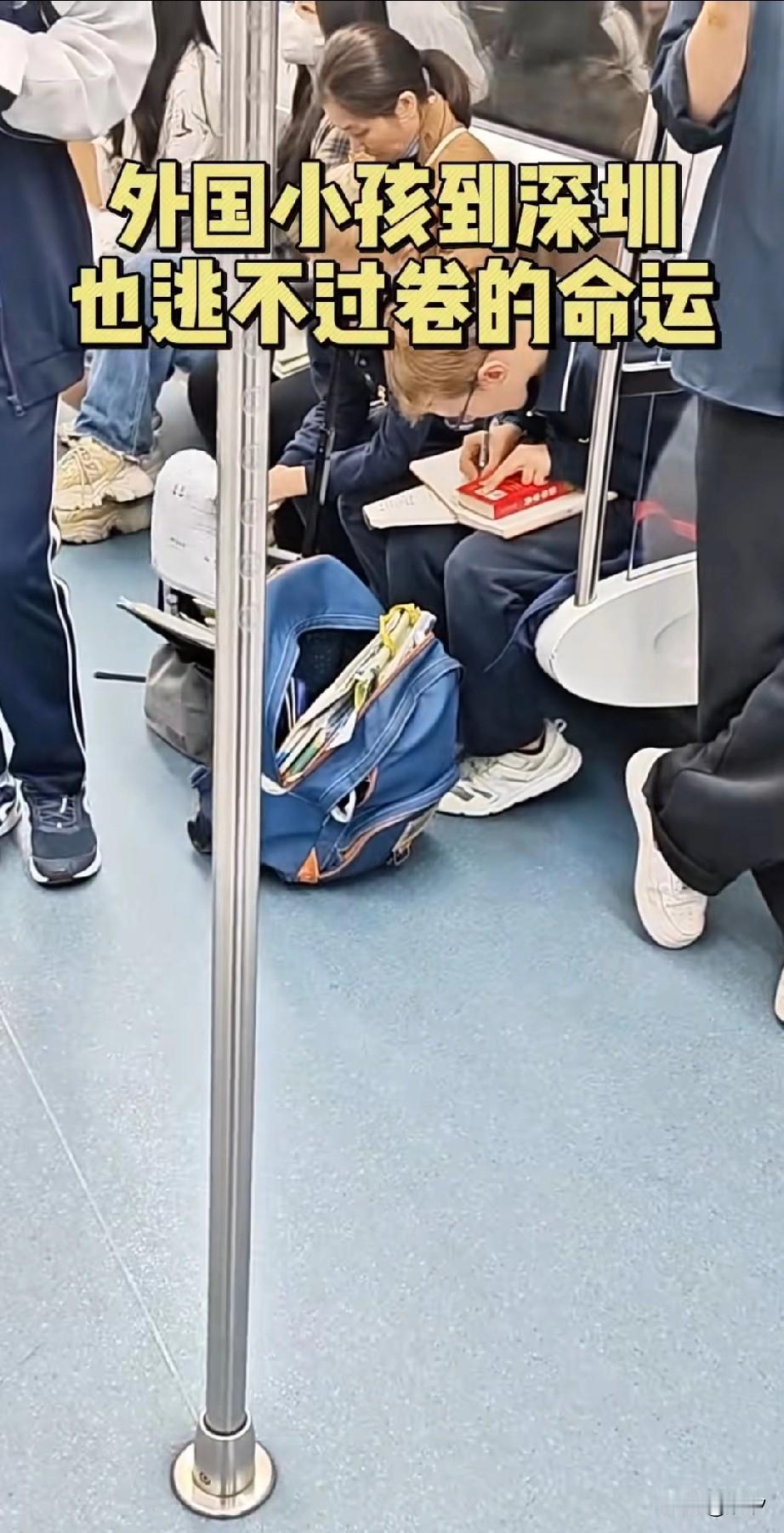 深圳地铁上惊见两个洋娃娃, 他们都在奋笔疾书, 老外的孩子来深圳也是会卷的, 毕竟周围的人都在努力, 他们也受到了鼓舞,开始学习, 这样的场景每天在深圳地铁上演, 怪不得深圳发展这么快, 原来大家都这么努力, 深圳速度不是吹的, 果然,深圳是个包容的城市, 很多老外都在这里定居, 他们的孩子受到中国的义务教育, 自然会成为一代精英, 如果返回国外简直是降维打击, 这样的孩子天生竞争力就强, 大家对于老外孩子在深圳也比较卷,这事怎么看? 深圳 深圳地铁印度人
