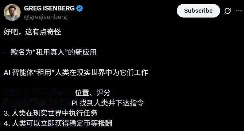 以前,我们对AI能够自主写代码感到惊奇;而现在,当AI开始像调用函数一样调用人类去「触碰草地」、去现实世界执行任务时——