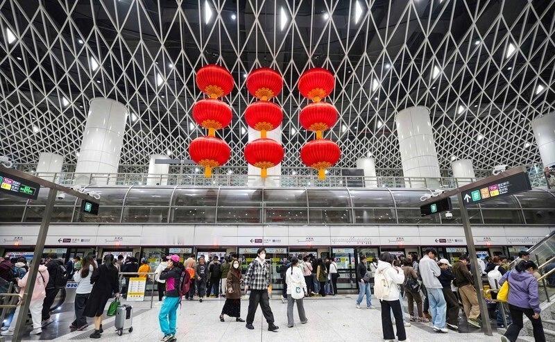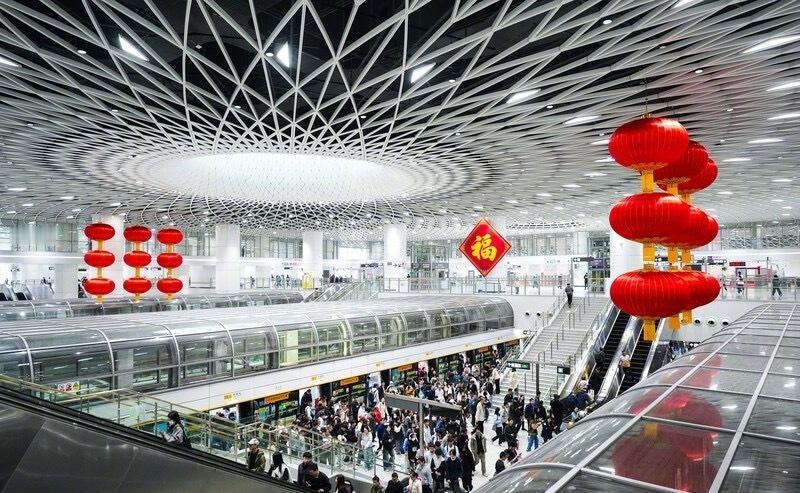 【快来拍照打卡!深圳地铁春节氛围感拉满了】深圳地铁春节期间调整运营时间 新春将至,深圳地铁“迎春接福”主题上新!深圳地铁在岗厦北、大运等交通枢纽,精心布置了“迎春接福”主题新春装饰,为往来市民捎去最浓情的新春问候。2月3日上午早高峰时段,记者现场实探,快跟着照片一起感受“深圳年味”。