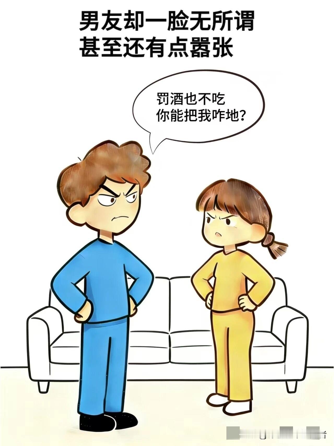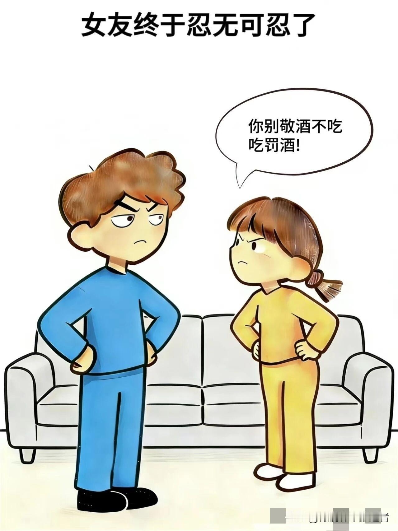 趣味漫画:女友:你别敬酒不吃吃罚酒,男友:罚酒也不吃,你能把我咋地,女友:罚酒不