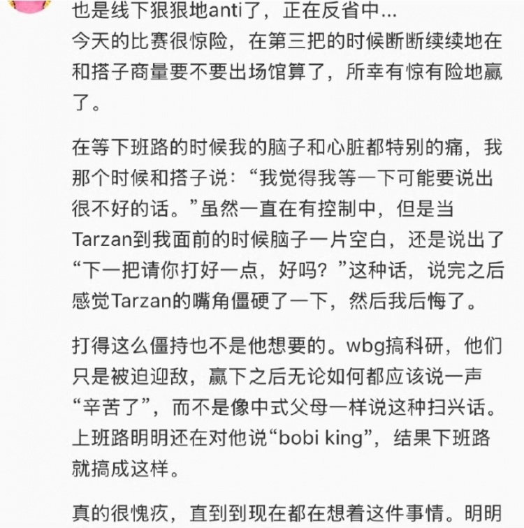 昨日赛后Tarzan被粉丝线下说“下一把请打好一点”,爱笑发言保护