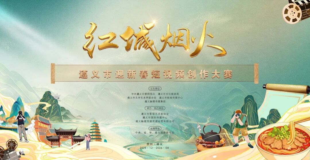 “红城烟火”遵义市迎新春短视频创作大赛,由中共遵义市委网信办、遵义市文化旅游局、遵义市文学艺术界联合会、遵义市新闻传媒中心、遵义融媒传媒集团联合主办。遵义市影视艺术家协会、遵义市国际传播中心、遵义融媒传媒资源运营有限公司承办执行。大赛旨在充分运用短视频平台挖掘城市文化基因、提升城市文旅价值。创作方向包含城市烟火气场景、城市人文风情、城市感人故事、红色及非遗文化、城市记忆、城市航拍等。