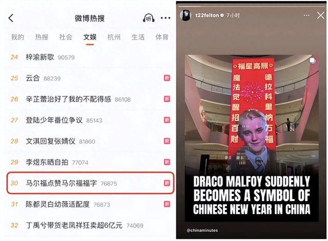 “扫马尔福真的能出卡!”“马年就要扫马又扫福”,相关话题迅速登上热搜。连远在海外的扮演者汤姆·费尔顿也注意到了这场来自东方的新年热潮,发文加入互动。