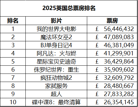 英国周末票房(1.30-2.1):1.《哈姆奈特》公映第四周凭借更小的跌幅夺冠;