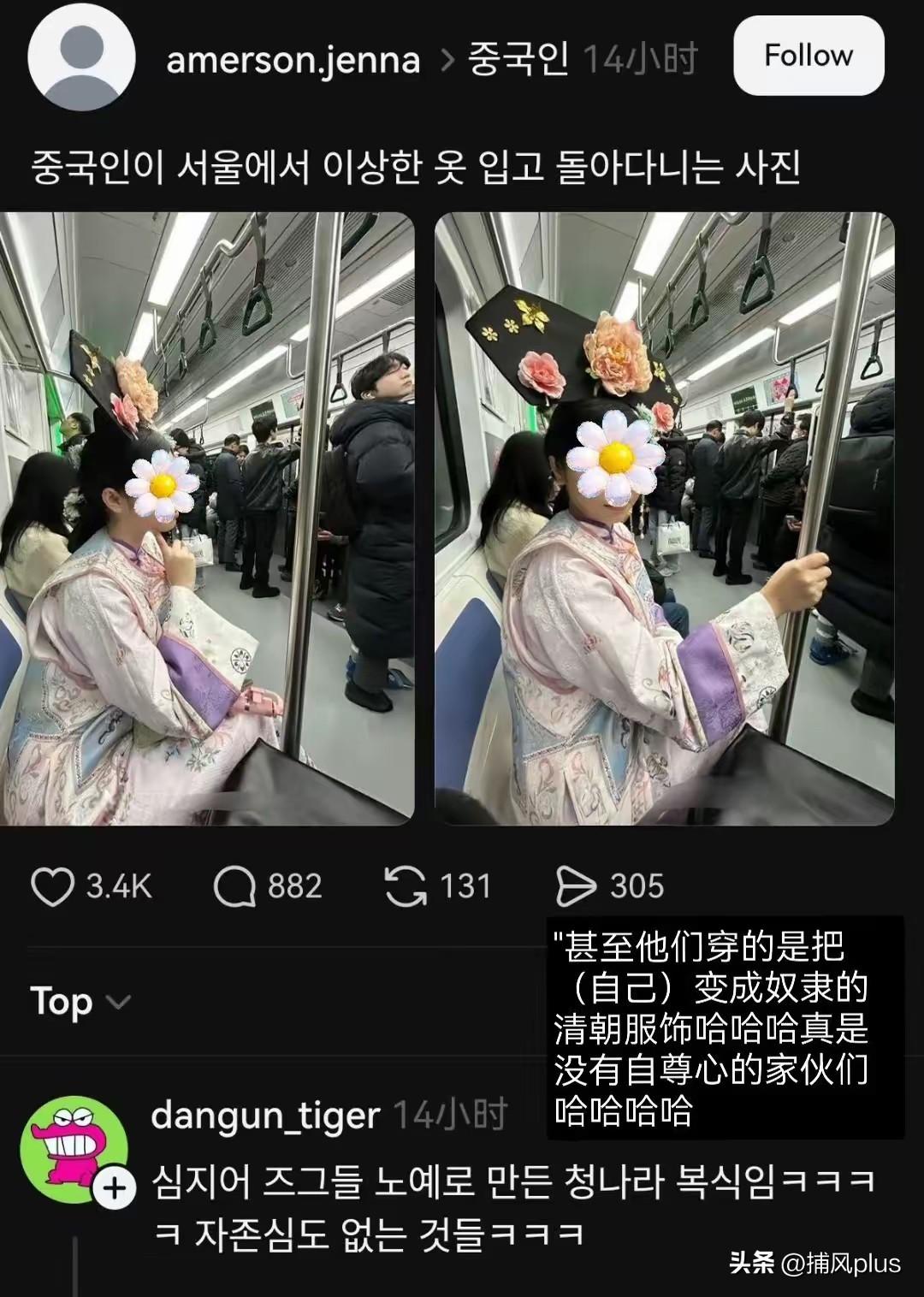 一名中国女生穿改良后的清朝“格格装”,结果被韩国人嘲讽。全世界审美都一样,如果连韩国人都不愿偷窃剽窃的服饰,那指定是不太符合审美标准的。 长期以来,韩国一直热衷于剽窃中国文化。日本、越南也是如此,看到中国文化里面“美”的东西,都要剽窃,并标榜是自己的。 但韩国人一直没有触碰清朝的所有周边,清朝的服饰更是唯恐避之不及。大概是韩国人知道自己是东夷,内心里不愿意与蛮族划上等号,所以尽力避免一切“非中华”的文化符号。