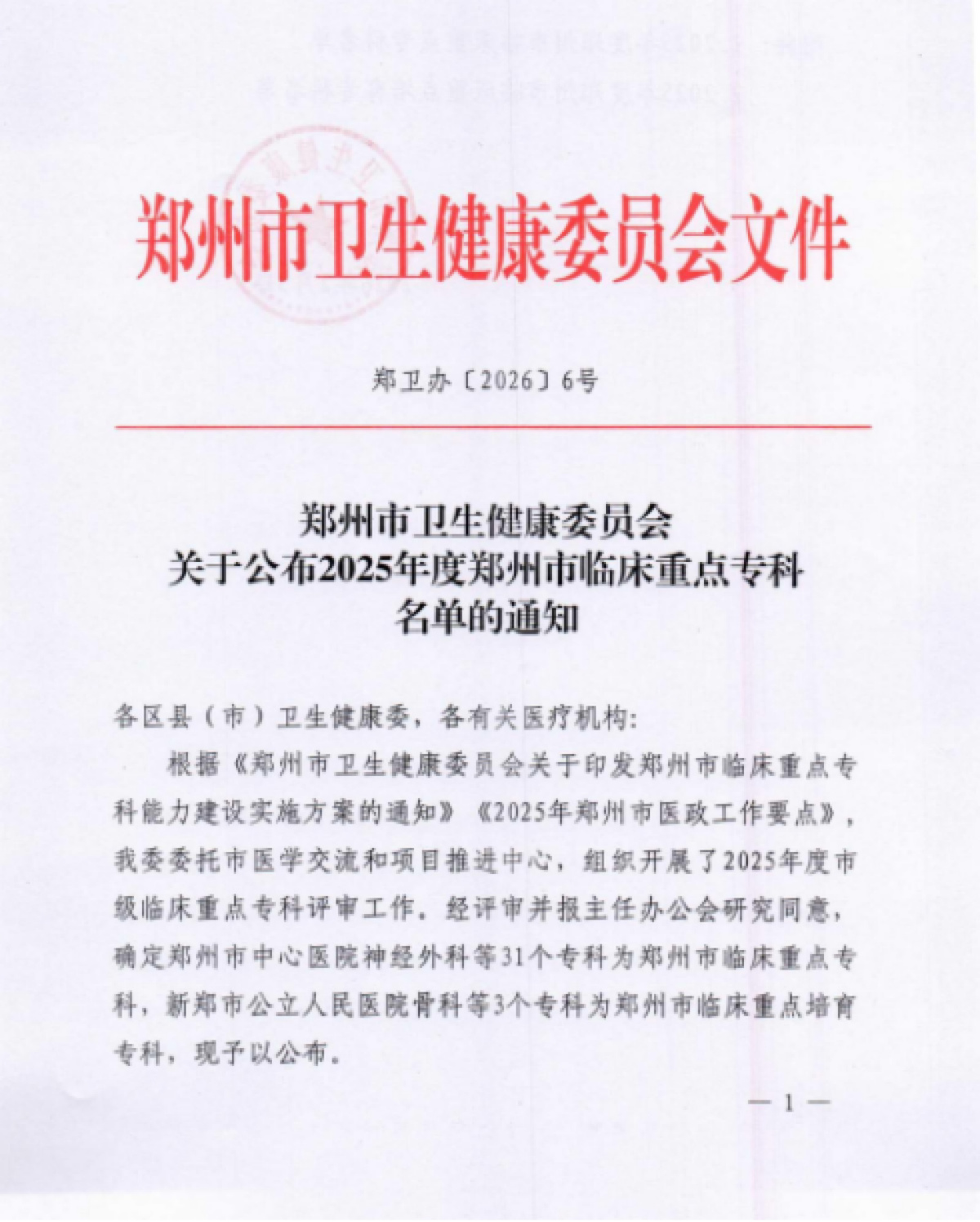 近日,郑州市卫健委公布2025年度市级临床重点专科评审结果,河南三博脑科医院神经外科成功获批“郑州市临床重点专科”。这一荣誉不仅是对医院专科技术实力的高度认可,也标志着医院高质量发展迈上新台阶。
