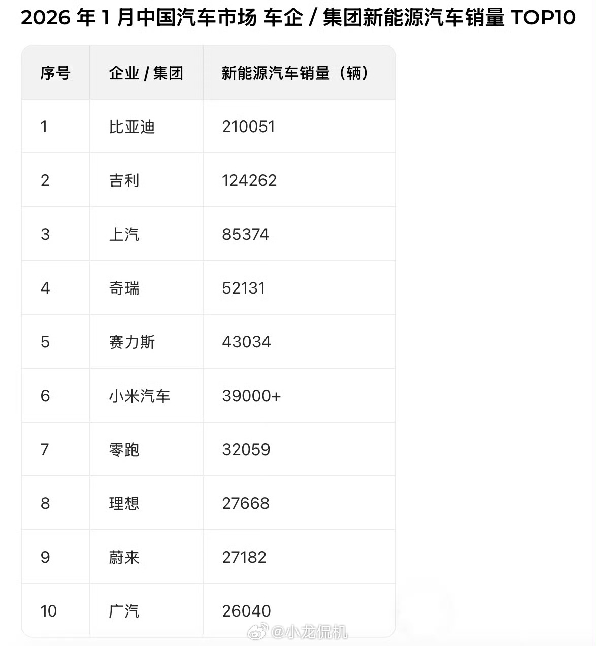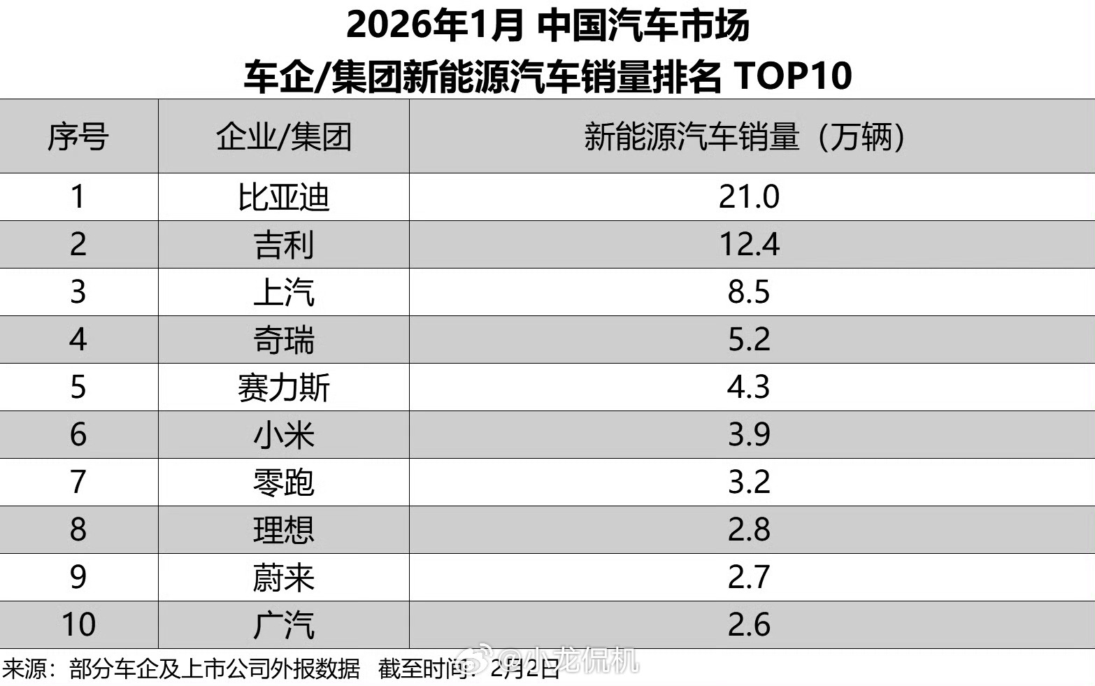 都说一日之计在于晨一年之计在于春。新年伊始,中国新能源市场的淘汰赛已见分晓,1月销量榜单不仅划定了竞争轮廓,更将头部车企的差距拉至肉眼可见。比亚迪以超21万辆的战绩,稳坐新能源汽车销冠,在行业平稳期上演了一出强势领跑。这并非偶然,而是技术与体系力的厚积薄发。自2021年6月起,比亚迪已连续56个月未尝败绩,新能源累计销量突破1530万辆,继去年底达成全球第1500万辆下线后,持续刷新行业纪录。当市场竞争从“增量抢夺”转向“品牌与全球化”的高阶比拼,比亚迪的海外表现尤为亮眼。1月海外销量超10万辆,同比劲增43.4%,在欧洲多国核心市场站稳脚跟。背靠2025年“三冠王”与全球车企前五的底气,比亚迪在2026年首月便确立领先身位。这不仅是其绝对统治力的延续,更为全年市场竞争格局,定下了“中国龙头,全球扩张”的主基调。
