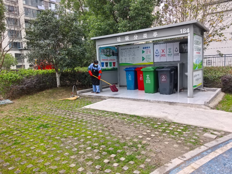 在前往小区东侧一座垃圾分类亭途中,记者遇到了小区物业负责保洁的主管溪得敏,她拿着一把长柄工具正在小区通道上巡查,“我的任务之一就是在小区内巡查,随时看到漂浮物就顺带捡起来,每天不间断。我们垃圾分类开展有一段时间了,小区垃圾分类督导员每天有三个时间段在岗,工作细心,效果很好。”她说。