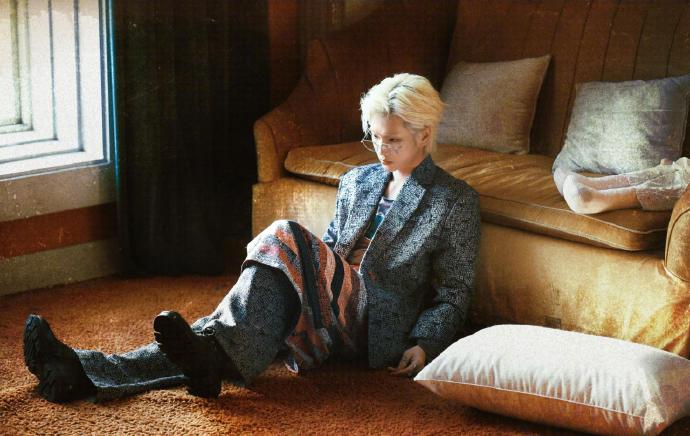 周震南金发版权威冷脸萌 周震南造型,一身oversize粗花呢西装套装诠释独有
