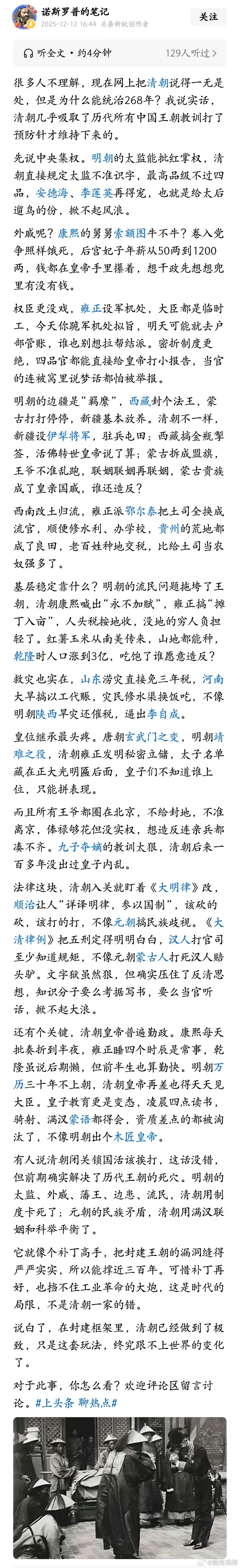 现在网上把清朝说得一无是处,但是为什么能统治268年?