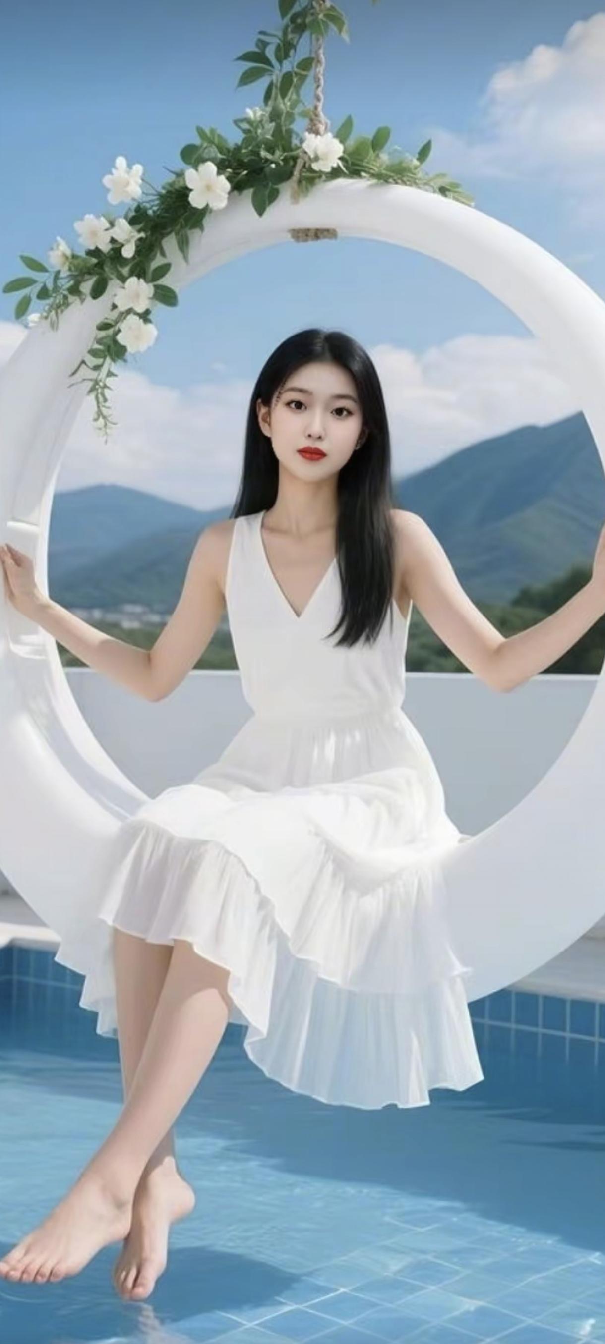 一袭汉服雅韵生,绣鸾凤花绽风情。不借丹青苗秀色,天然风韵倾人城。