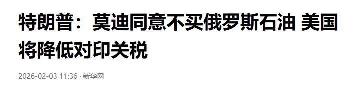 印度这次正式放弃了俄罗斯,转身进入了美国的怀抱。 近期莫迪宣布以后不会再购买俄罗斯的石油,而是会购买美国的时候,不仅如此,印度还将拿出上千亿美元来购买美国货。 2025年夏季,当时美国以“印度间接支持俄罗斯战争机器”为由,对印度输美商品加征25%惩罚性关税,叠加此前25%的“对等关税”,使印度纺织品、机械等出口产品面临50%的超高税率壁垒。 数据显示,关税实施三个月内,印度对美出口暴跌33亿美元,近三分之一出口企业营业额腰斩,印度斯坦石油公司等能源巨头被迫紧急调整原油采购渠道。 这种经济施压并非孤立事件——早在2024年,美国就曾因印度采购委内瑞拉石油威胁加征关税,如今更将能源问题与地缘政治深度捆绑。 俄罗斯石油对印度的重要性远超普通贸易商品。自2022年俄乌冲突爆发后,俄罗斯为突破西方制裁,向印度提供每桶8-10美元的折扣价,使印度炼油企业成本大幅降低。 2023年,俄罗斯原油占印度进口总量的33%,日均供应量达180万桶,成为印度维持5%以下通胀率的关键因素。 更关键的是,印度约40%的炼油设备专为处理俄罗斯重硫原油设计,切换油种需投入巨额改造资金。这些现实约束,使得印度在2025年8月美国首次加征关税时仍坚持采购俄油,甚至通过阿联酋等第三方渠道规避制裁。 转折发生在2025年12月至2026年1月的美印密集谈判期。美国贸易代表格里尔在谈判中抛出“胡萝卜加大棒”策略:承诺取消25%惩罚性关税,并将基础关税从25%降至18%。 暗示若印度不妥协,将面临更严厉的制裁措施。此时印度正陷入两难困境:国内反对派指责莫迪政府“牺牲能源自主权”,而美国市场又占据印度出口总额的18%。 更微妙的是,印度刚与欧盟达成自由贸易协定,美国为防止盟友体系出现裂痕,迫切需要与印度达成示范性协议。 2026年2月2日的最终协议包含三重交易:印度承诺停止直接采购俄罗斯石油,美国立即取消50%关税壁垒;印度同意未来五年采购5000亿美元美国商品,其中能源领域占比最高;印度逐步降低对美关税和非关税壁垒,直至降至零。 这份看似双赢的协议背后,隐藏着复杂的利益交换——印度获得的关税减免,直接抵消了能源成本上升带来的部分损失。据测算,转向美国和中东原油将使印度年度能源开支增加170亿美元,但关税下降可使印度对美出口每年节省约40亿美元。 协议达成后,全球能源市场立即出现连锁反应。俄罗斯对印原油出口量在2025年12月已降至两年最低,日均110万桶,较峰值暴跌29%。 美国则迅速填补市场空白,计划将日均对印原油出口从20万桶提升至80万桶以上,同时放宽对委内瑞拉石油出口限制,试图整合美洲能源供应。 印度炼油行业消息人士透露,企业需要“逐步收尾期”完成现有俄油交易,且可能通过第三方渠道继续间接采购,以缓解成本压力。 这场能源转向的深层影响远超经济范畴。俄罗斯失去最大买家后,日均超百万桶原油需重新寻找市场,可能加速向中国、中东等方向转移。 印度则面临战略定位的重新校准——既想维持“全球南方领袖”形象,又不得不向美国市场倾斜。更耐人寻味的是,印度在协议中承诺采购美国科技产品和开放农产品市场,这与其长期保护本土农业的政策形成鲜明对比,可能引发国内政治反弹。 当莫迪在社交媒体发文感谢特朗普“为14亿印度人带来利好”时,克里姆林宫的会计们正在计算账本上的窟窿。 这场没有香槟庆祝的协议签署,暴露出后冷战时代国际秩序的脆弱性:当能源贸易成为政治筹码,当关税武器化成为常态,中小国家如何在大国博弈中守护自身利益?印度选择用俄罗斯的“血”换美国的“票”,这种战略算计能否经得起时间考验? 那么,对于这件事,大家有什么看法?欢迎大家在评论区进行讨论。