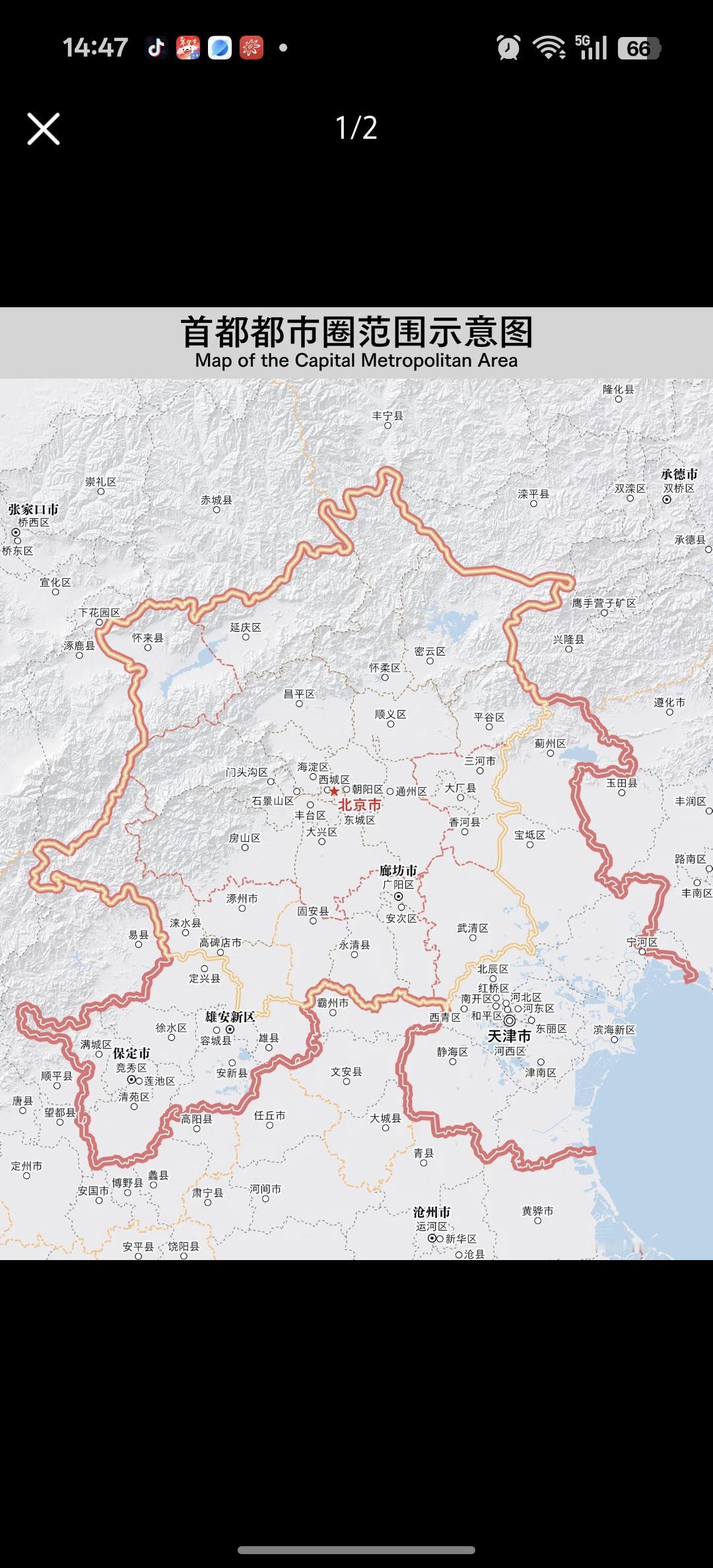首都都市圈中的通勤圈包括哪些城市?根据《现代化首都都市圈空间协同规划(2023—2035年)》,首都都市圈通勤圈核心包括北京市全域,以及以下跨省市区域,总面积约2.7万平方公里: 1.北京市全域 2. 天津市:武清区 3. 河北省廊坊市:广阳区、安次区、三河市、大厂回族自治县、香河县、固安县、永清县 4. 河北省保定市:涿州市、涞水县、高碑店市 5. 河北省张家口市:怀来县 功能圈(红线范围)在通勤圈基础上扩容,纳入天津全域、雄安新区及更多河北区县,核心承担疏解提升与战略承载,联动京津雄形成创新三角,是都市圈的“发展骨架”。其定位承接北京非首都功能外溢,通过产业转移、功能完善,推动区域增长极培育,实现“核心引领、多极支撑”的空间格局。 简单来说就是以北京为核心,“通勤圈+功能圈”双层联动,串联京津雄及冀域多城。疏解非首都功能,融产业、通民生、破壁垒,以区域协同绘就一体化新篇,成北方高质量发展核心引擎。