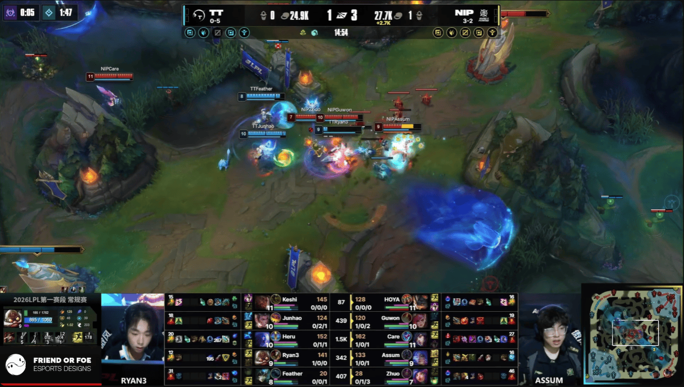 TT选用:Keshi奎桑提、Junhao赵信、Heru瑞兹、Ryan3飞机、Feather娜美