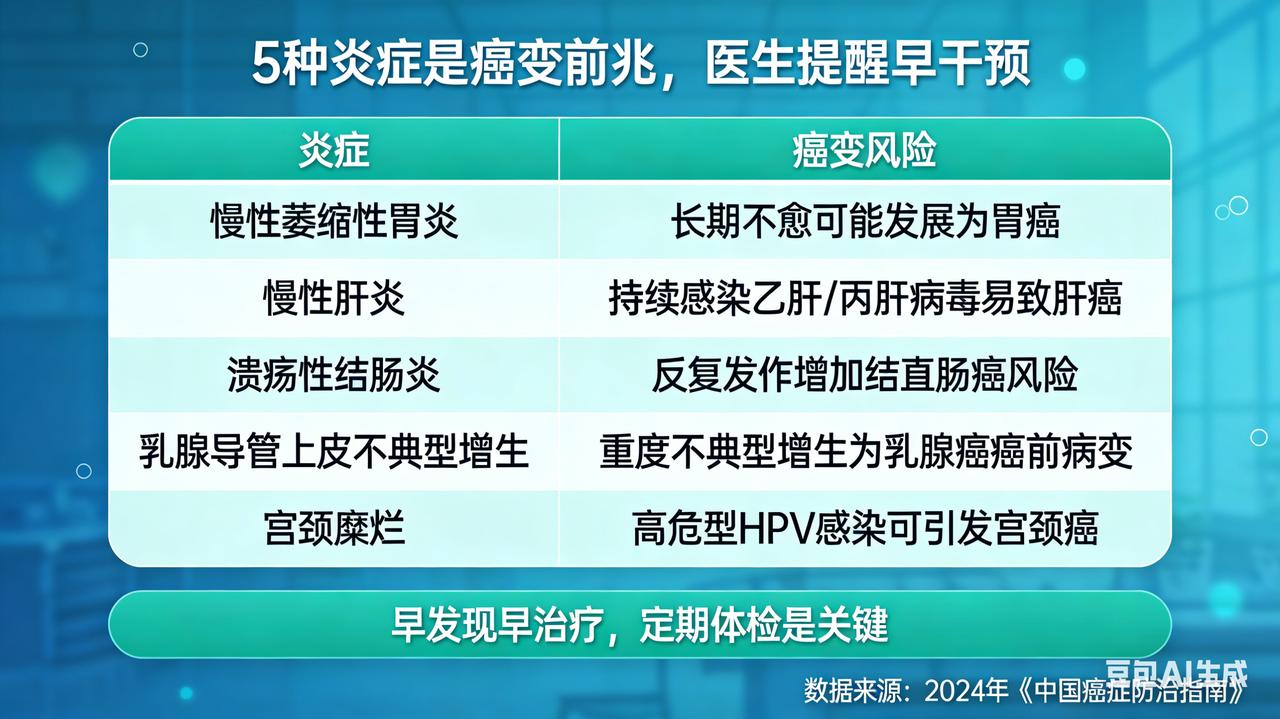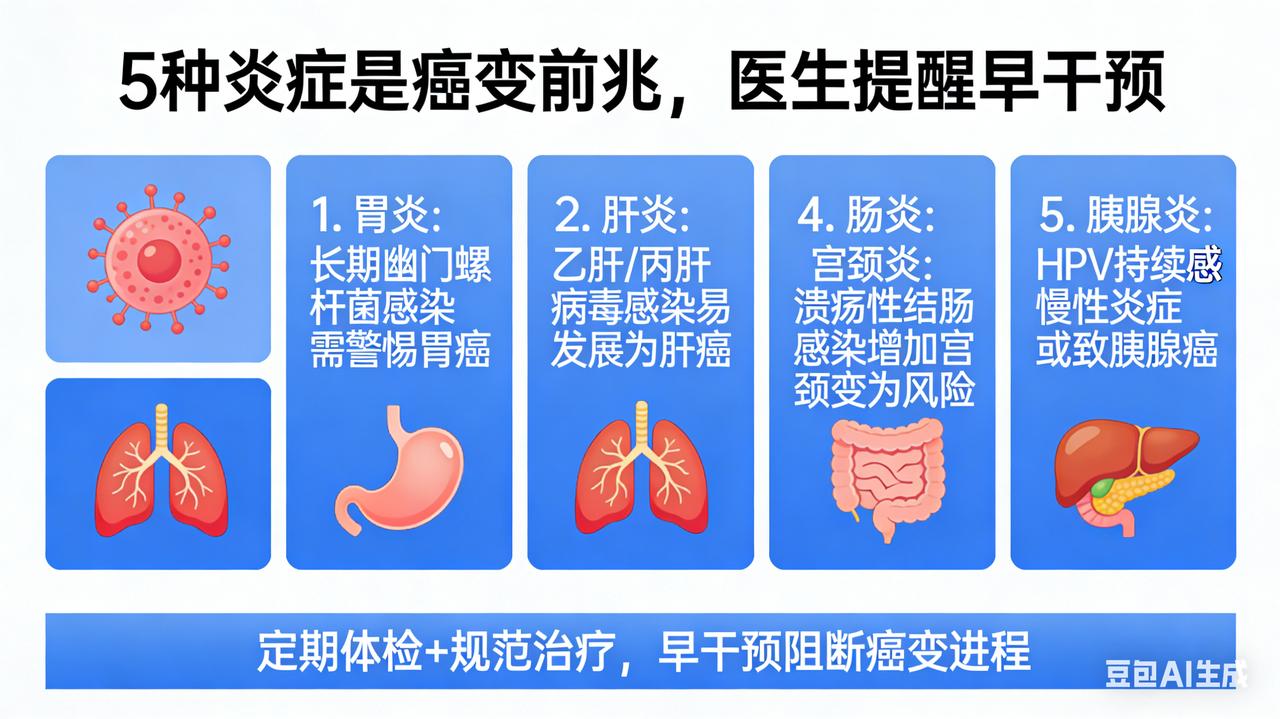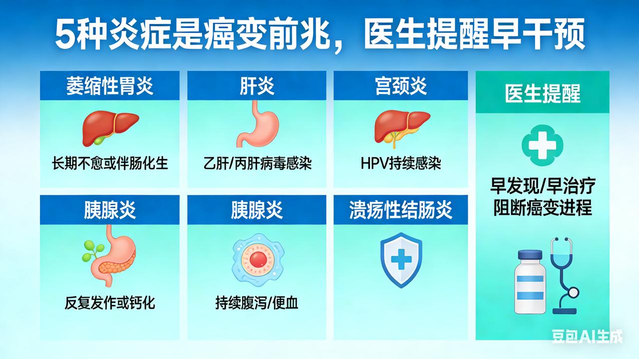 5 种炎症是癌变前兆,医生提醒早干预 这5种炎症是“癌变警报”,早扑灭才能守住