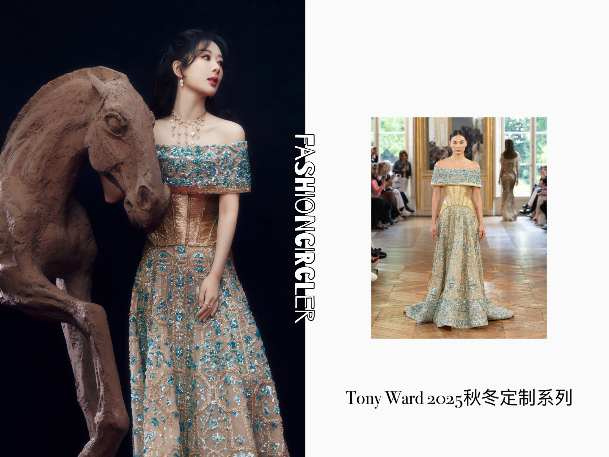 杨紫今日出席微博之夜活动造型图集,身着Tony Ward 2025秋冬定制系列一字肩重工刺绣礼服,佩戴全套Pomellato宝曼兰朵珠宝,华丽但并不繁重,蛮适合的选择,紫妹穿得很好看 ~