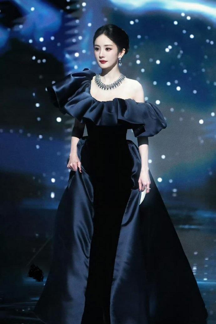 今天杨幂和张艺谋一起出席活动,杨幂这次穿了一件深蓝色的裙子,看起来年轻又靓丽。 杨幂搭配的这件裙子有很美的荷叶肩设计,能够展现出满满的浪漫感,效果相当的不错。 她这次大秀细腰,还凸显出了完美的身材比例,气质超好。 杨幂脖子上戴着很奢华的项链,展现出了满满的高贵感,越变越有吸引力了。 她这回特意把头发挽了起来,还画着精致的妆容,整个人显得很有大牌明星范儿。 张艺谋里面穿黑色高领毛衣,外面套着黑色的西装,还留着寸头,像个帅气的艺术家。