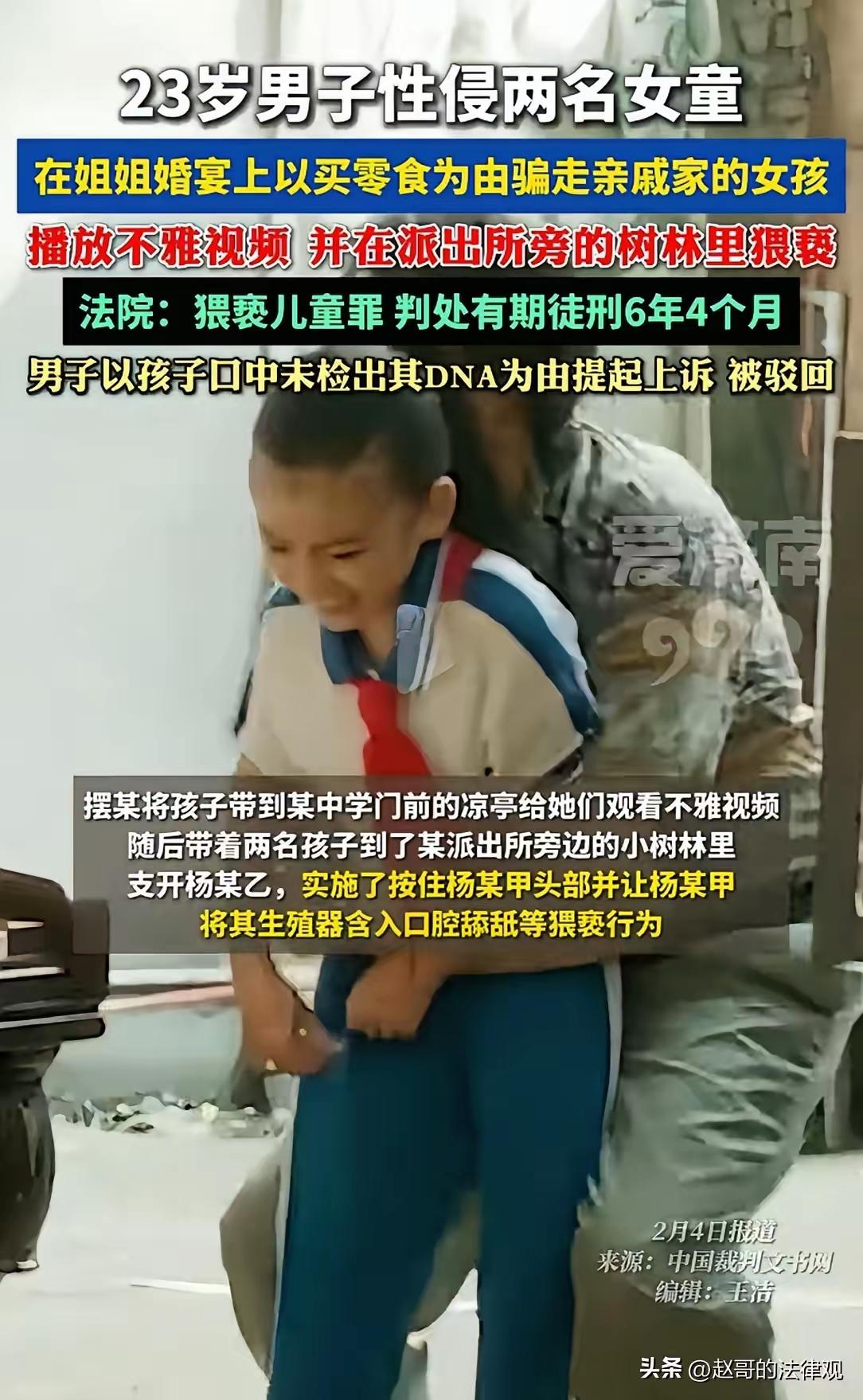 该案件反映了严重的社会问题,违法犯罪行为对受害儿童造成的伤害极其严重,司法机关根据法律依法处理,体现了对未成年人权益的保护。案件经过详细调查、取证和法律程序,最终作出了判决,体现了法律的公正与严肃性。 案件重点总结: 犯罪事实:摆某以带两个女孩买零食为由,将她们骗到偏僻地点,观看不雅视频,并对其中一女孩实施猥亵行为,性质恶劣。 证据认定:尽管DNA未检出,但根据孩子们的证词和其他证据,法院认定犯罪事实清楚。 法律依据:根据《刑法》第237条关于猥亵儿童的规定,认定为猥亵儿童罪,情节恶劣,适用较重刑罚。 判决与上诉:法院判处有期徒刑6年4个月。被告不服二审,提出证据不足等理由,二审法院驳回上诉,维持原判。 法律理解: 在涉及未成年人犯罪案件中,儿童的陈述具有重要证据价值,特别是在陈述完整、细节具体且与其他证据相符的情况下。 DNA检测虽为重要佐证,但非唯一依据。法律允许在没有DNA证据的情况下,依靠其他证据认定犯罪事实。 对于严重猥亵行为,法律规定的刑期在五年以上,情节恶劣时罚则更重。 社会呼吁: 公众应增强法律意识,提高对儿童保护的认识。 家长应加强对子女的教育和监护,防止此类悲剧发生。 社会各界应共同努力,为未成年人营造安全、健康的成长环境。 法律严惩犯罪,保护未成年人权益,是每个社会成员的共同责任。未成年人案 未成年人犯罪