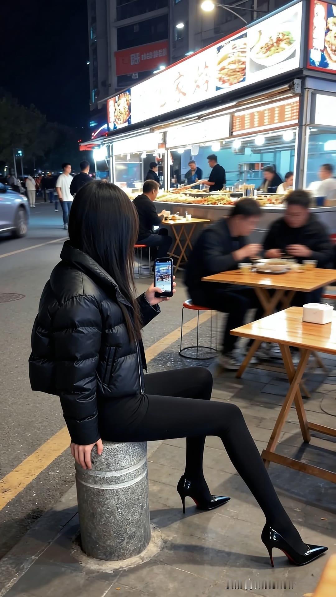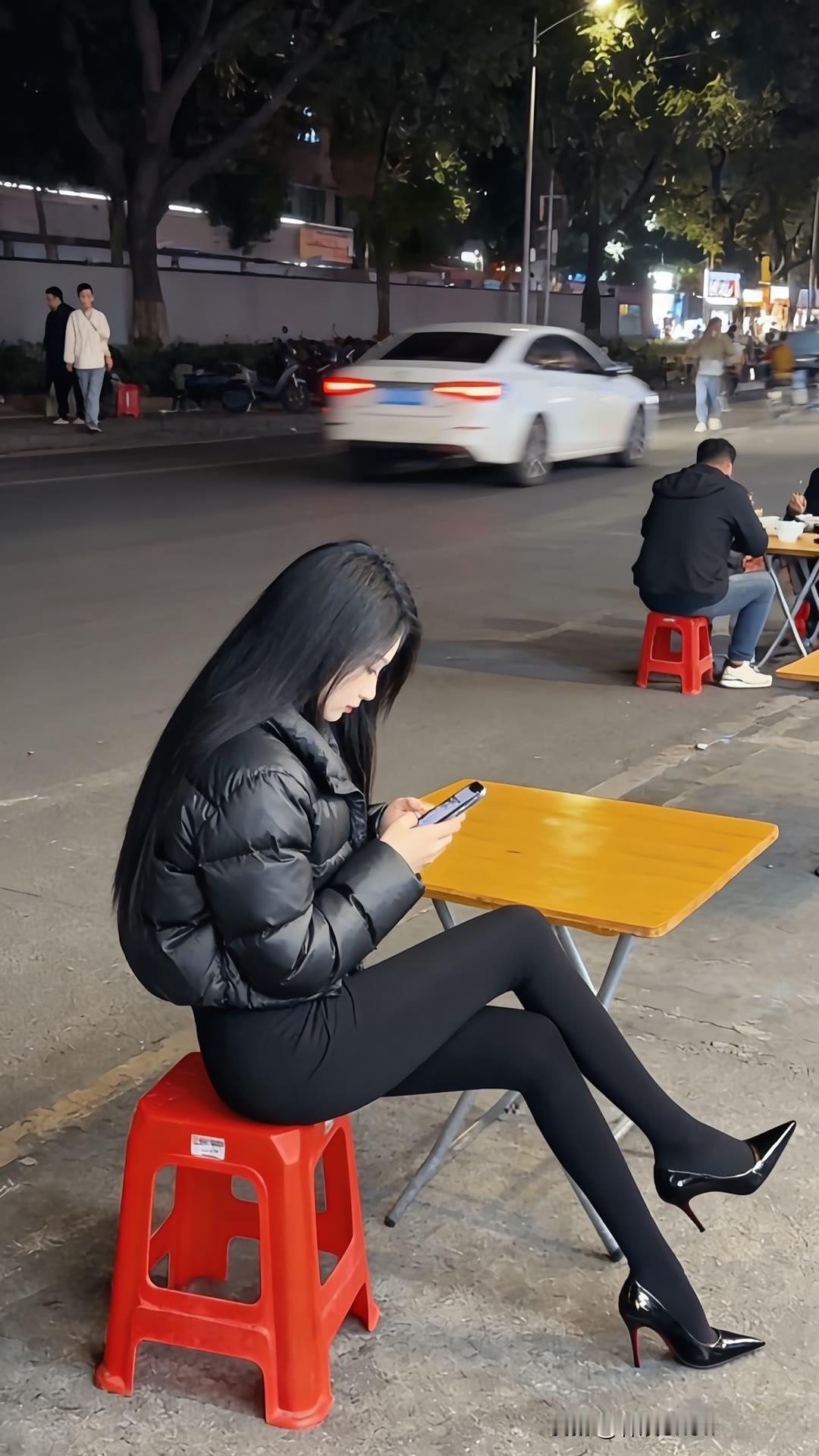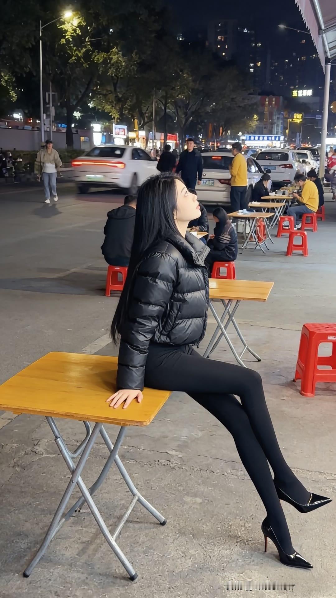 夜色阑珊处,佳人倚栏思。漂亮小姐姐 大长腿