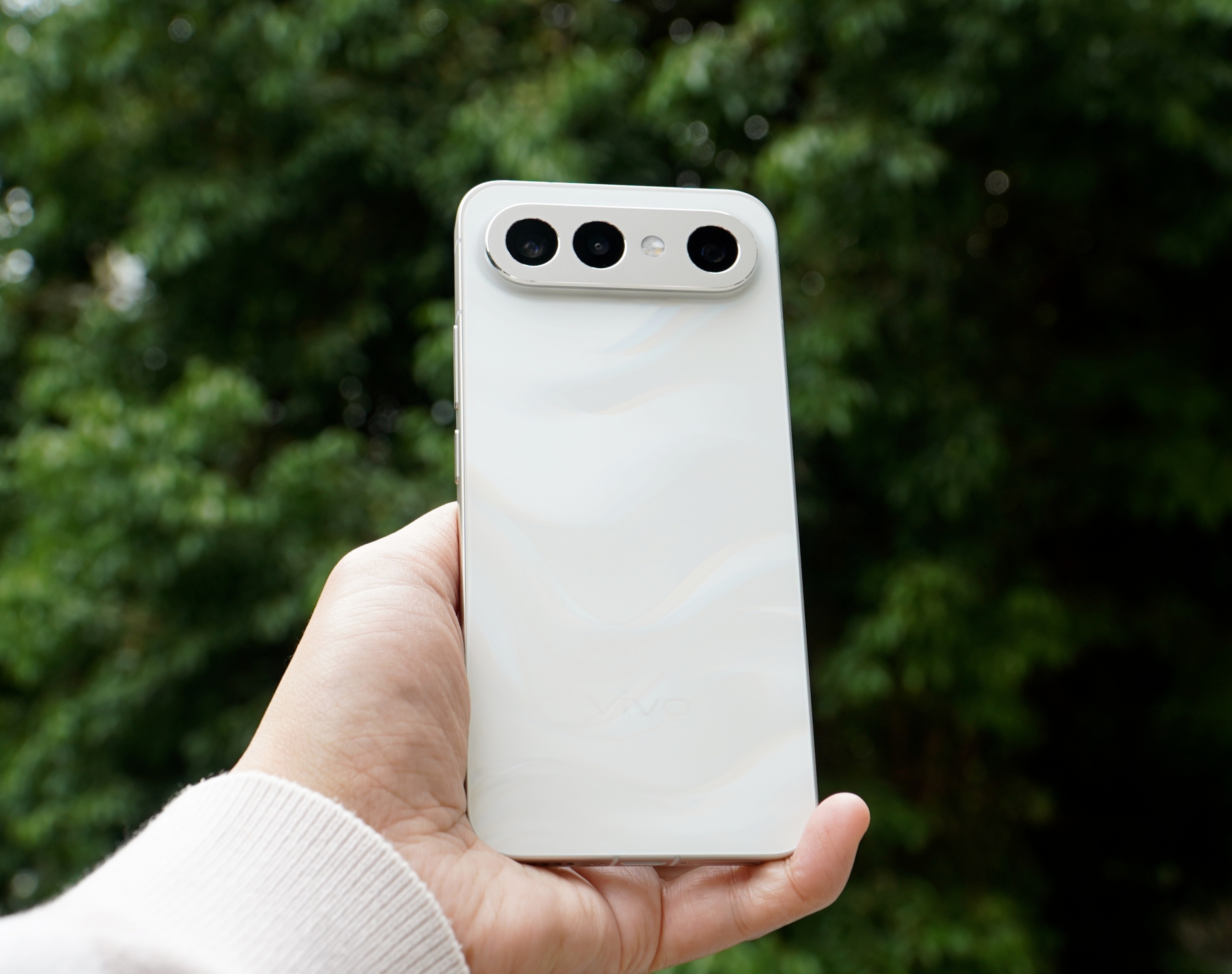 vivo S50 Pro mini告白真机上手图:作为一个白色控,我第一时间选了告白这个颜色,缎面柔光玻璃后盖的手感很不错,图案也很漂亮,6.31英寸屏幕+8.1毫米/192克的机身,握持起来也很轻薄很舒服。这外观设计,感觉如何呀?