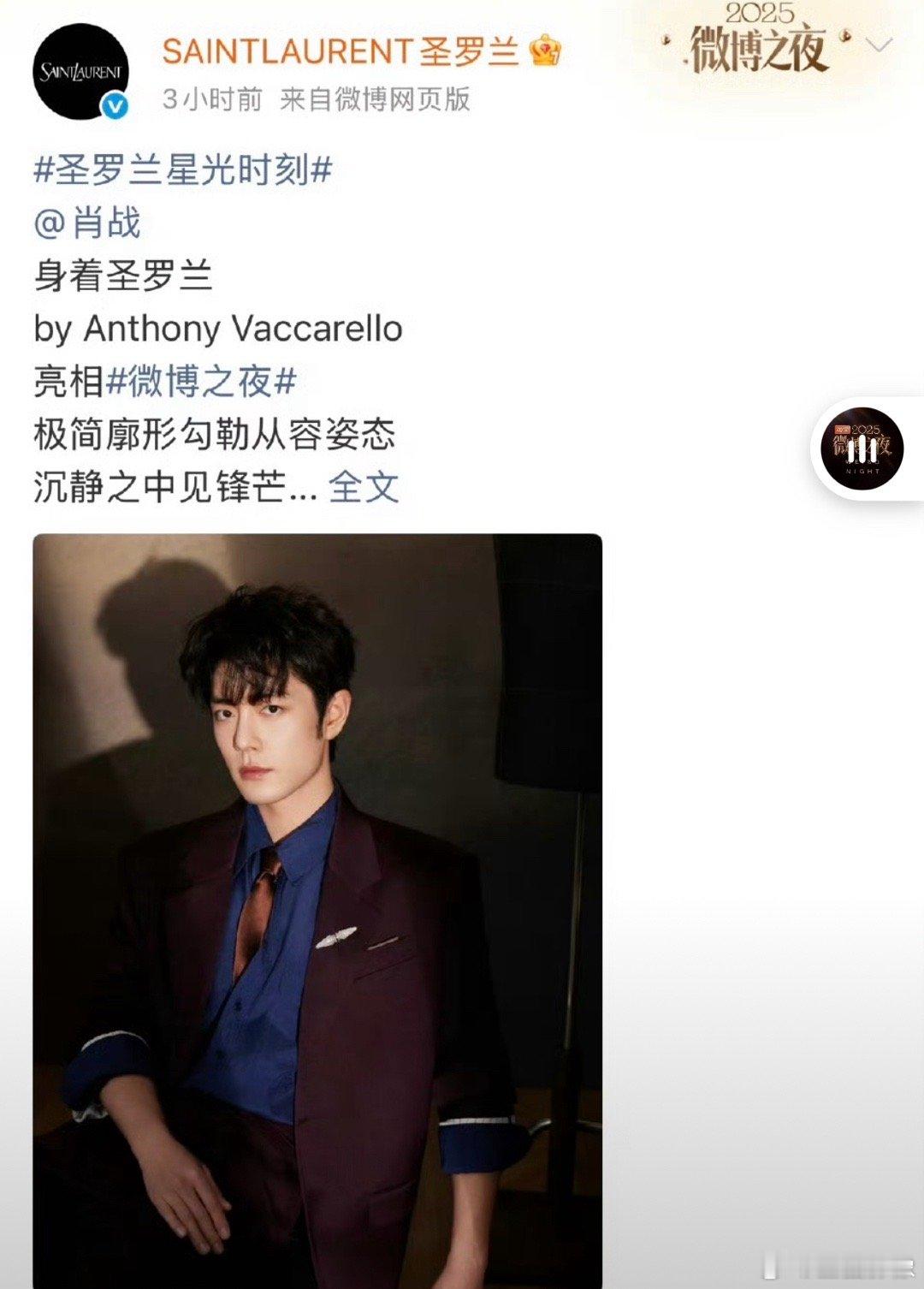圣罗兰和Gucci都直接认领了肖战的两套礼服。说是今天圣罗兰不止一个艺人穿。但是