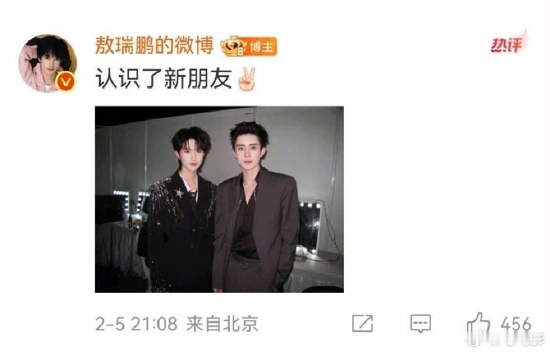 敖瑞鹏认识了新朋友敖瑞鹏晒和黄朔合照 救命!敖瑞鹏黄朔的合照也太养眼了,新友谊解