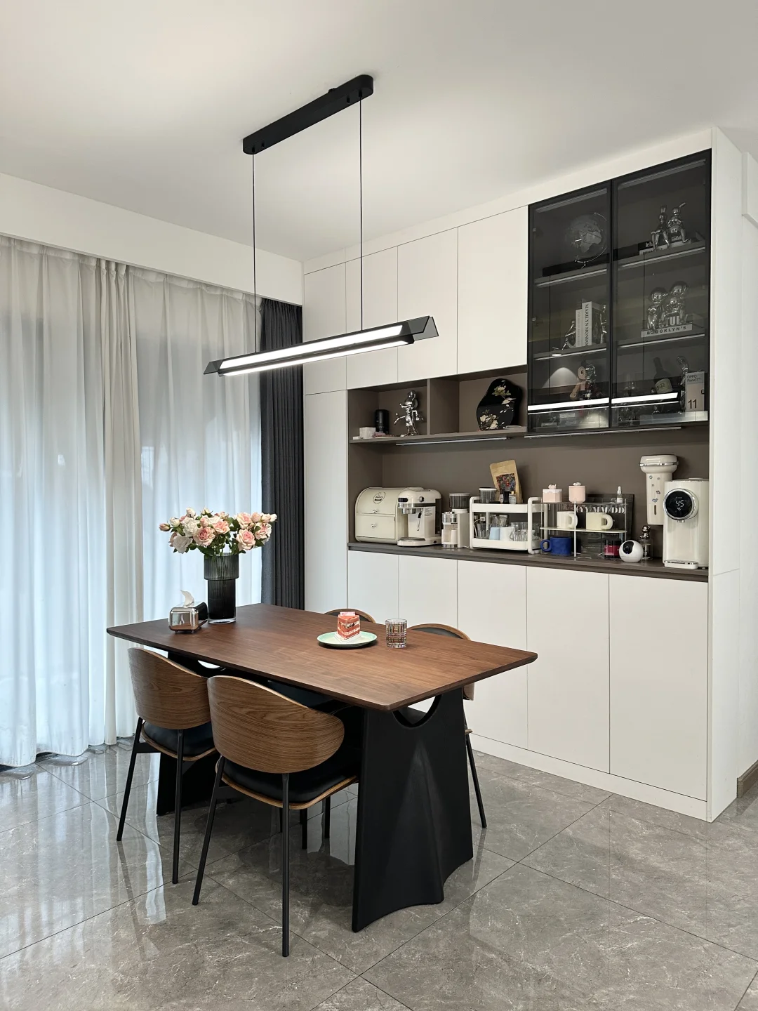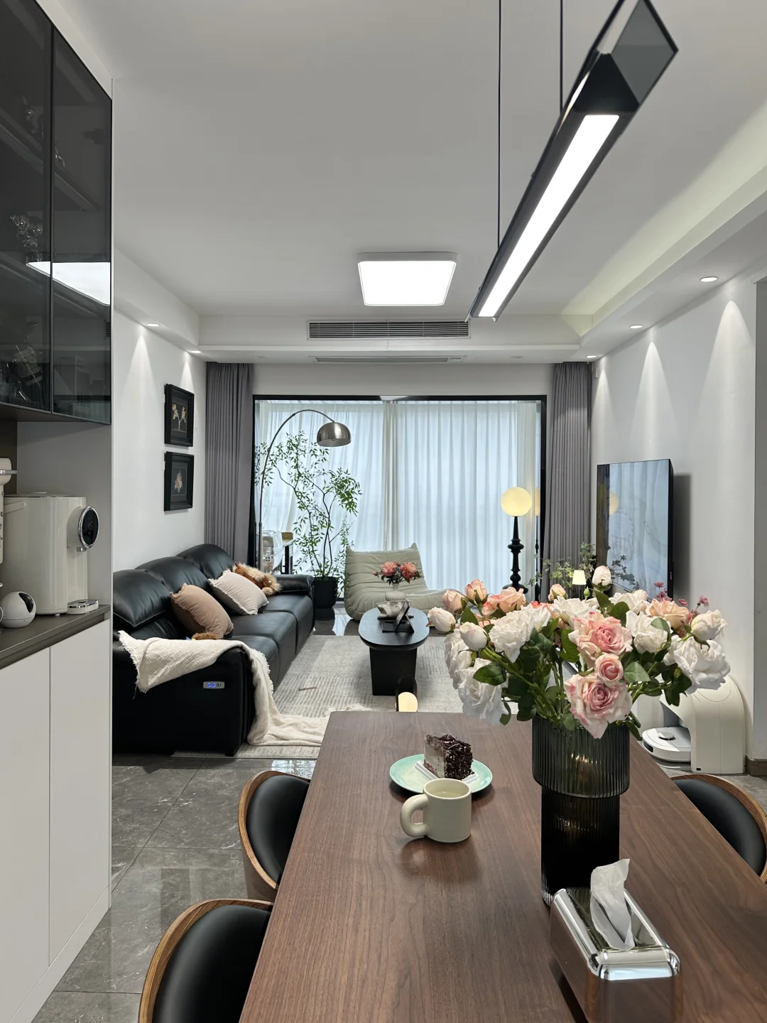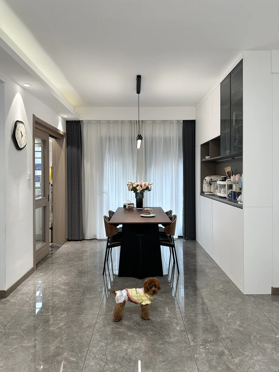 120平精装房软装花了9w 不拆不砸,靠软装变成自己喜欢的样子 套内只有90平的家没做复杂背景墙 简约的黑白灰风格,硬装基础软装就不基础 客厅开间3.6米,餐厅3米 小心的餐厅做了满墙餐边柜,荷花白➕咖啡灰棕 简单又干干净净的🏠 普通人的家装成这样已经很满足了