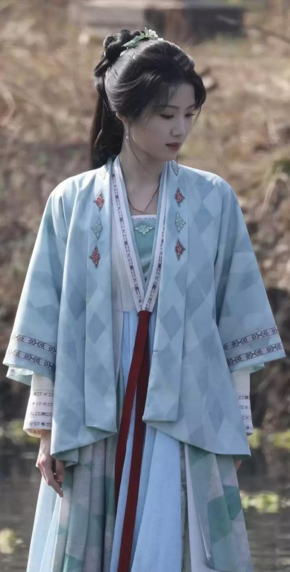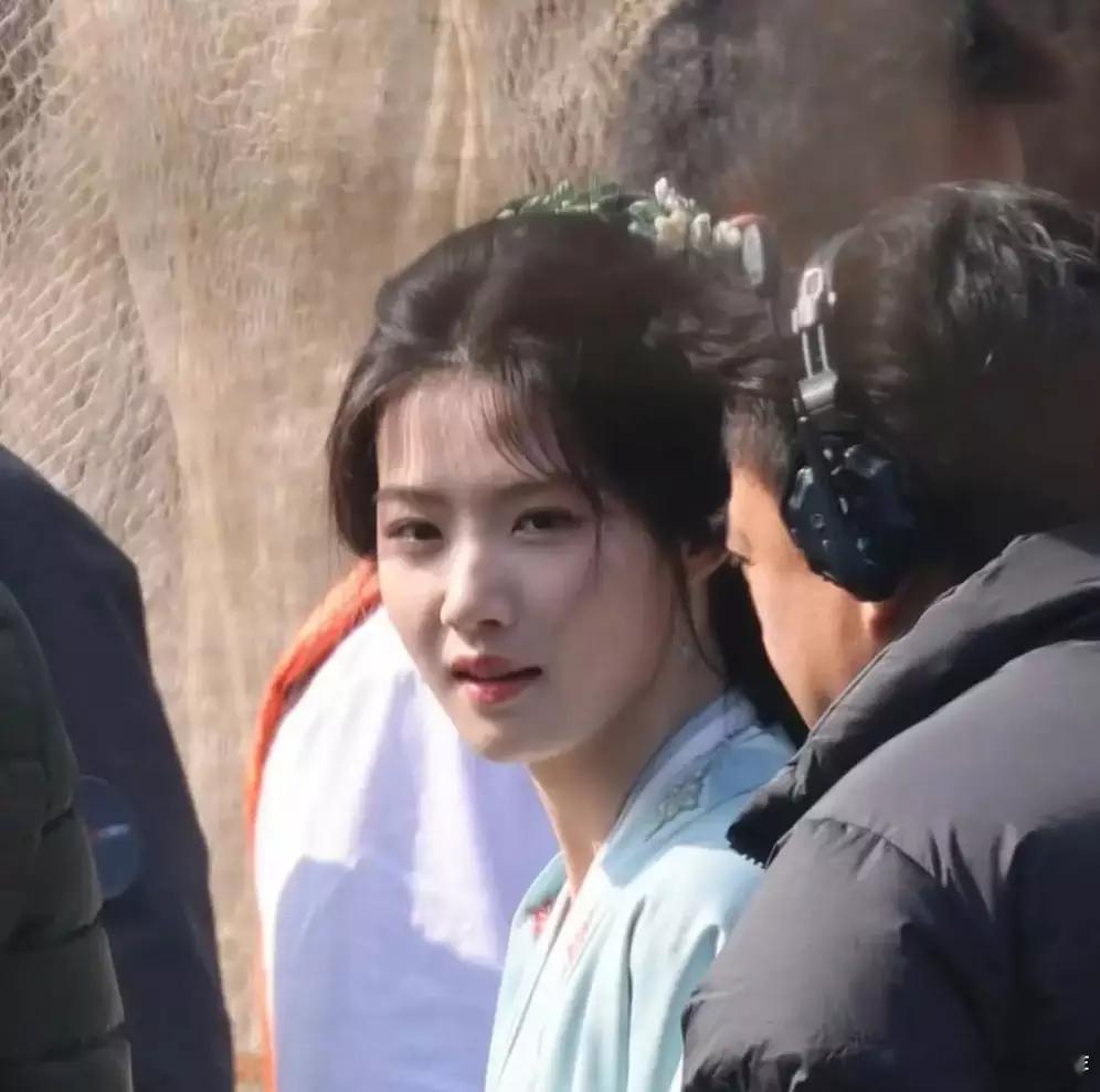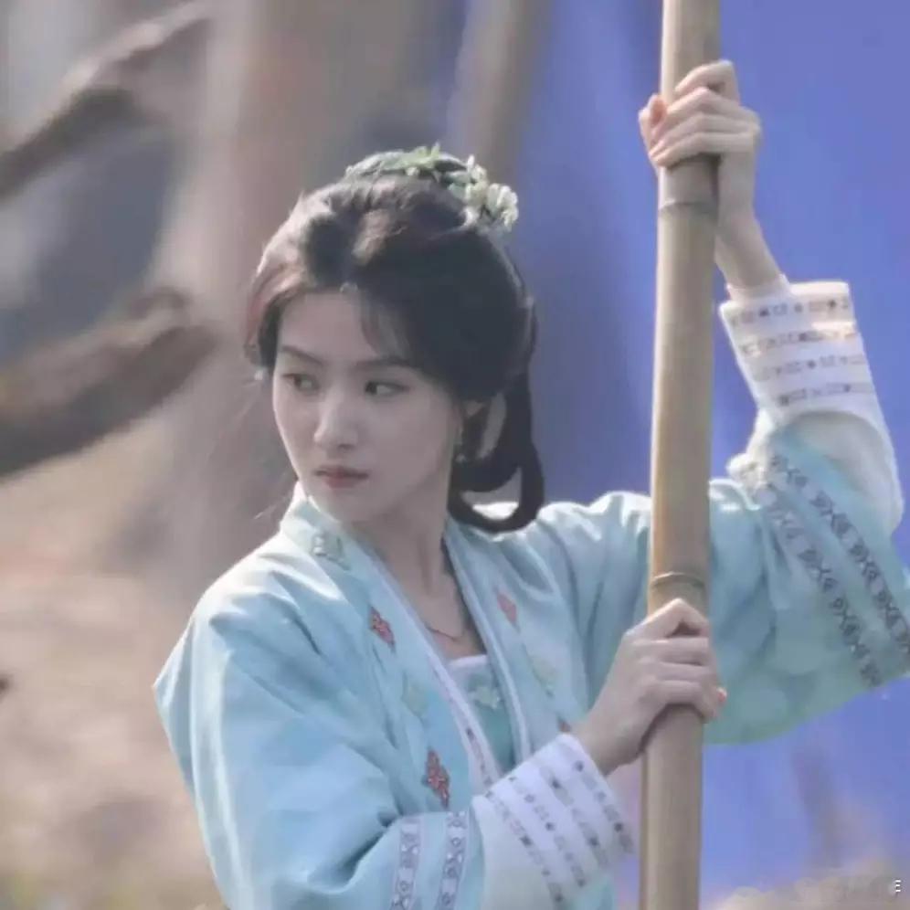 青青娱乐卢昱晓穿浅蓝古装气质温婉 持篙撑船娇俏可人