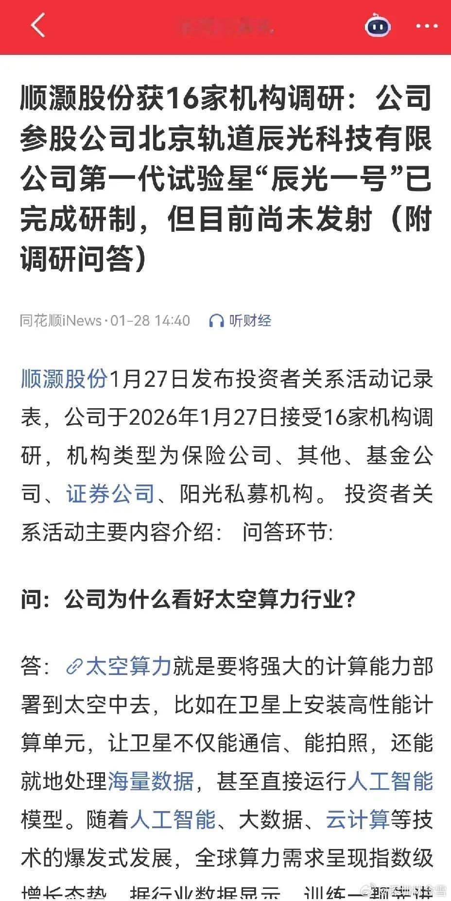 顺灏股份获16家机构调研,参股的辰光一号试验星已研制完成,卫星项目实打实推进非纯概念,只是短期暂未兑现收益;股价同样大跌后横盘整理,静待新契机。