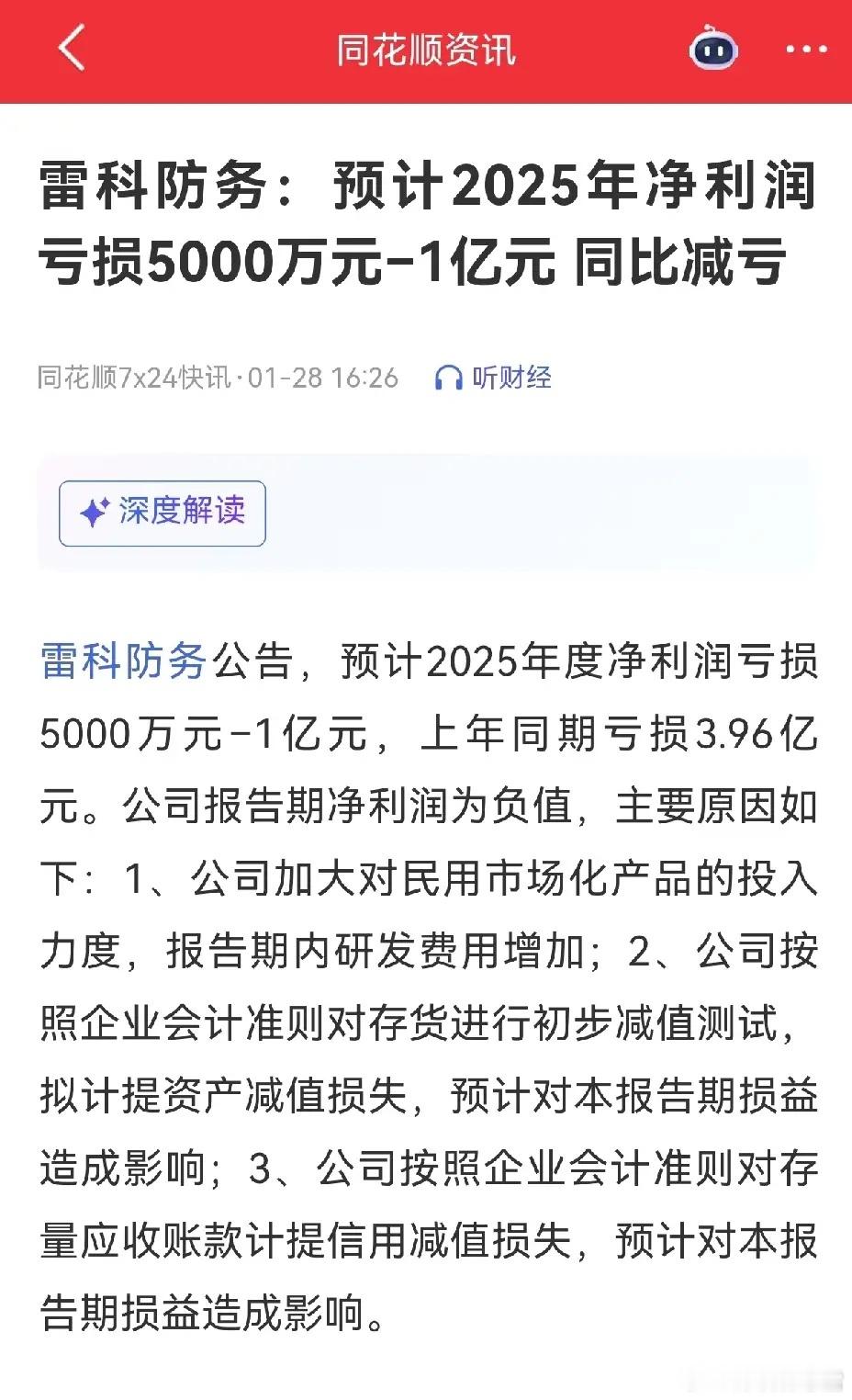 雷科防务2025年净利虽仍亏损,但同比大幅减亏就是业绩向好的信号,拐点已现 大跌后沿生命线横盘半月,情绪释放完毕,主力蓄势待择方向。