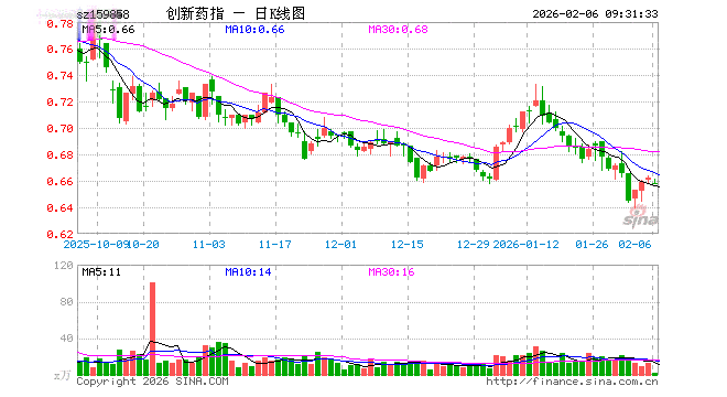 2月6日,创新药ETF南方(159858)开盘跌0.60%,报0.658元。创新药ETF南方(159858)重仓股方面,药明康德开盘跌0.75%,恒瑞医药跌0.72%,华东医药跌0.03%,复星医药涨0.30%,科伦药业跌0.22%,百济神州跌0.58%,长春高新跌0.19%,康龙化成跌0.69%,泰格医药跌1.10%,艾力斯涨0.17%。