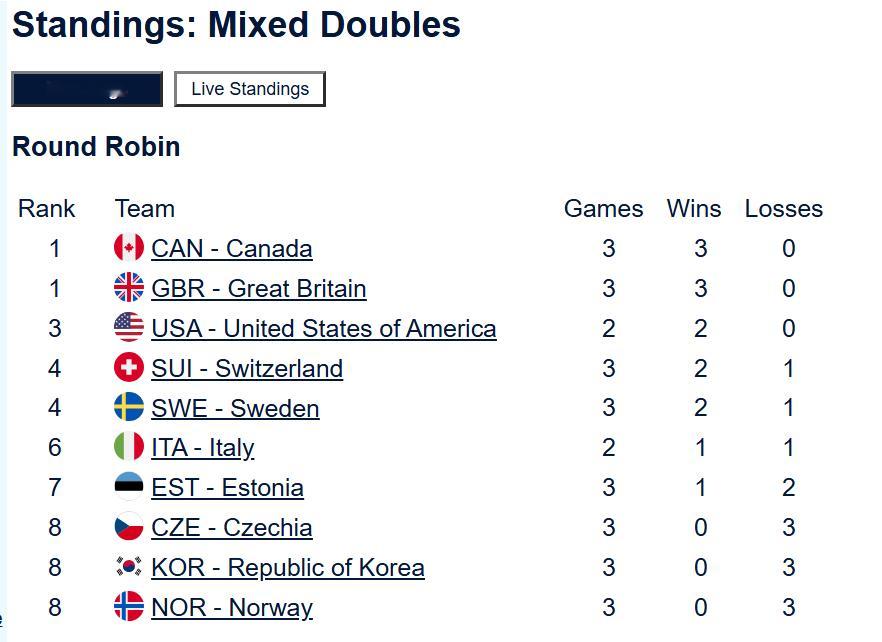【奥运冰壶】混双凌晨两点场:加拿大7-2意大利,瑞士8-5韩国,爱沙尼亚7-5瑞