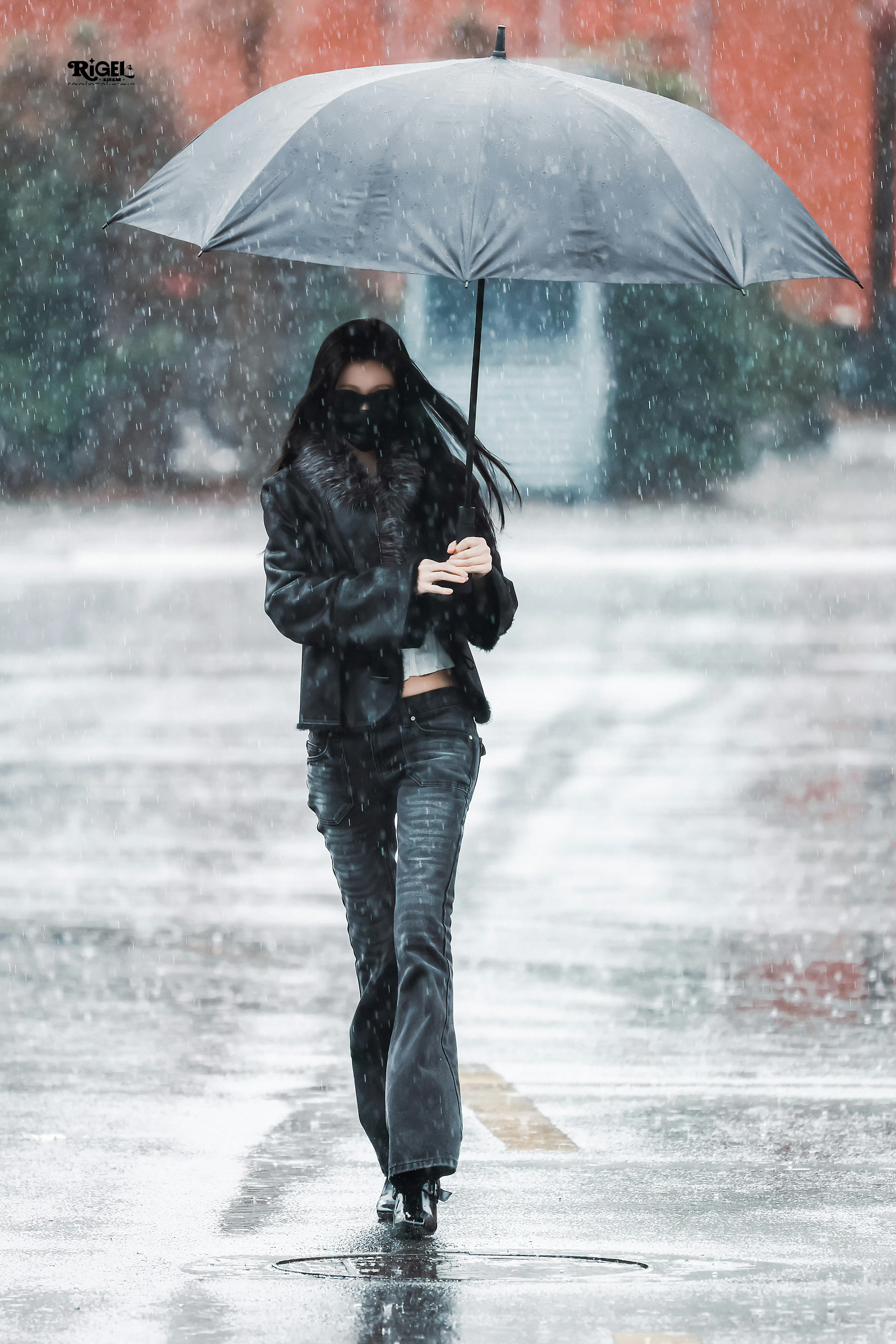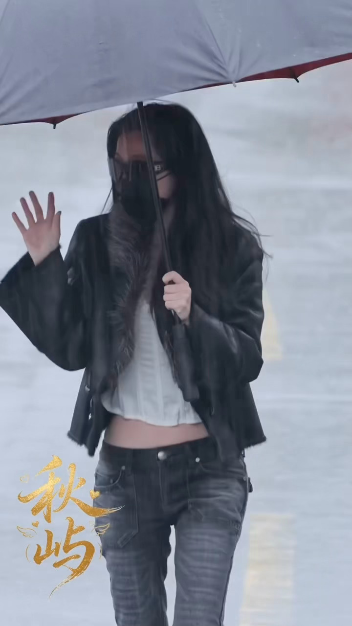 书欣怎么独自在上班路上拍现偶虞书欣雨中撑伞上班虞书欣皮衣低腰裤look