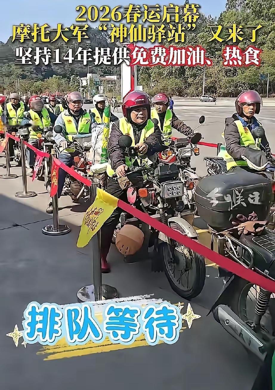 摩托大军为啥享受好福利? 每年春运期间,广西都会为返乡的“摩托大军”提供一系列暖心的免费服务,具体福利包括: 免费加油:中国石化等企业会在广西的多个加能站,为符合条件的返乡摩骑提供免费加油服务或加油补贴。 御寒物资:像保暖套装、雨衣、保温杯等防寒用品都会免费发放,有些服务站还提供电暖气、姜糖水来帮大家取暖。 食品补给:面包、热粥、方便面等免费食品,还有热食、宵夜都能在服务点领取。 其他服务:除了这些,还有免费检修摩托车、应急药品、行李免费邮寄等近20项贴心服务。 这些服务主要由政府部门、中国石化等企业以及志愿者共同提供,在梧州、玉林等摩托大军返乡的主要路线上都设有服务站,目的就是让大家能更安全、温暖地回家过年。 (文陈士健 图百度)