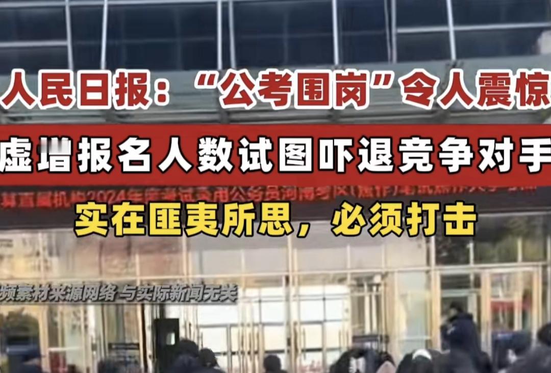 “公考围岗”,今天看到的一个新名词,令人震惊。“公考围岗”什么意思?就是一些考生与公考培训机构某些教师串通,利用非法获取的公民信息虚假报名,以显示这该职位报名人数很多,达到吓退部分竞争对手的目的。人民日报客户端用了“令人震惊”这个词来形容一些地方的“公考围岗”现象。以前知道招标的时候有“围标”的行为,今天知道公考有“围岗”的行为,严重破坏公考的公平性,确实令人震惊。同时个人信息的泄露转让,也是令人担心啊,这种现象必须严厉打击。公考