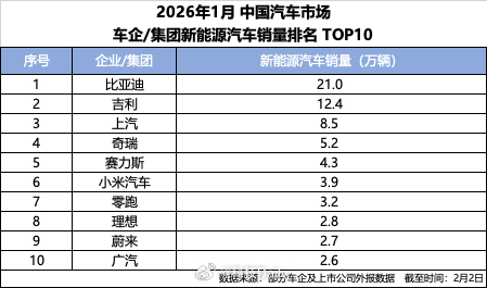 稳坐新能源汽车销冠,比亚迪1月销售新能源汽车210051辆。