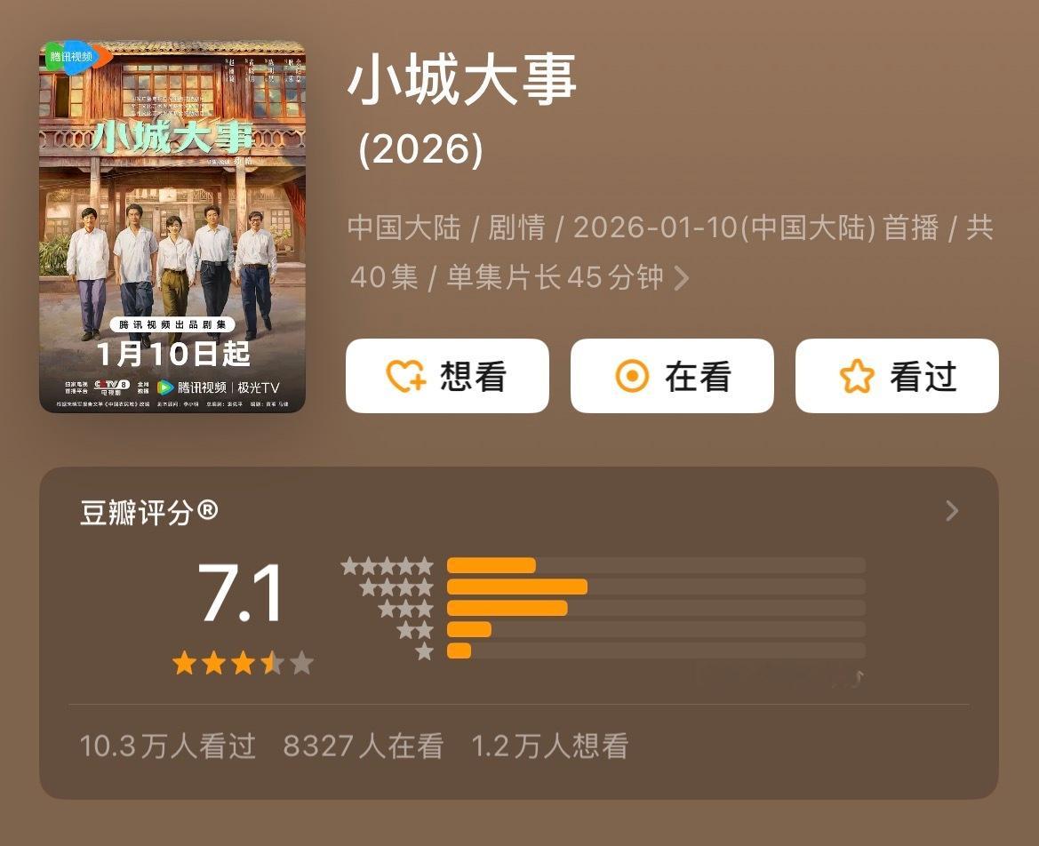 《太平年》开分7.8《小城大事》开分7.1《有罪之身》开分6.8