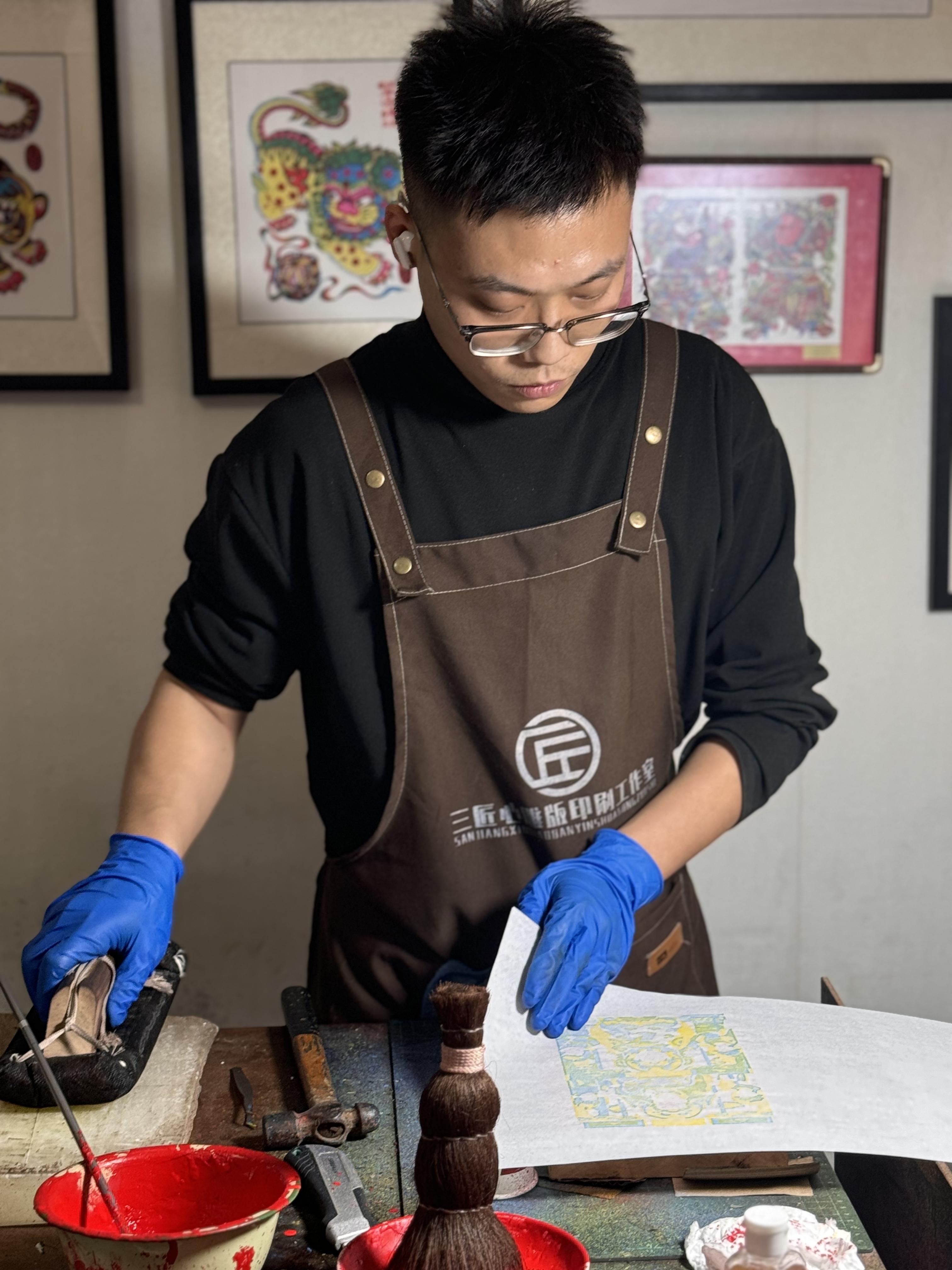 工作室里,三人分工默契:父亲专注创作及雕版,同时对接老客户;姐弟俩则积极触网探新,开拓新路。在各网络平台宣传推介武强木版年画的同时,他们积极走访老艺人,精进技艺;推出年画冰箱贴、手机贴、小画轴,让古老纹样“贴”近年轻人的生活;工作室不断推陈出新,创作出一系列符合当代审美的新颖年画作品,为传统艺术注入活力。