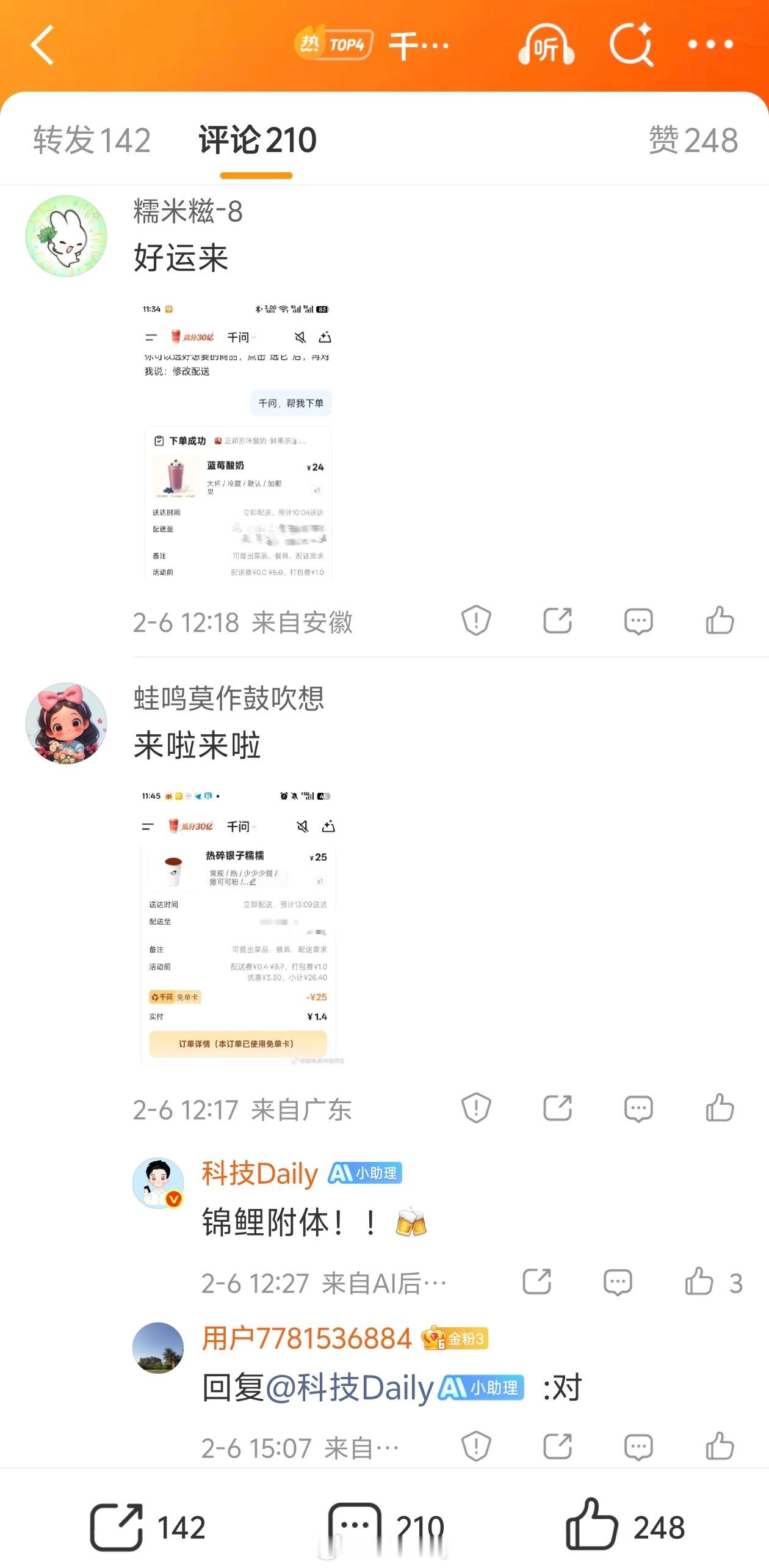多名领到千问免费奶茶网友发声 我评论区也特别热闹,大家都纷纷晒单,主要是我还额外
