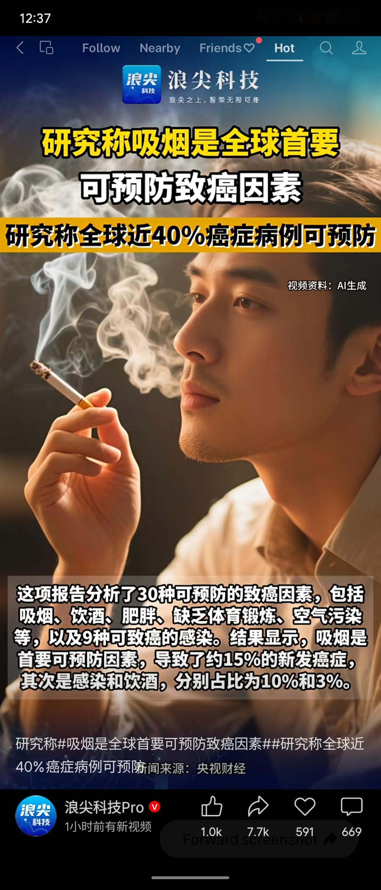 世卫组织最新报告指出,全球近40%的癌症病例(约710万例)可通过避免风险因素预防。在30种可预防因素中,吸烟是首要致癌风险,导致了约15%的新发癌症,其危害远超排名其后的感染(10%)和饮酒(3%)。这凸显了控烟在癌症预防中的核心作用。