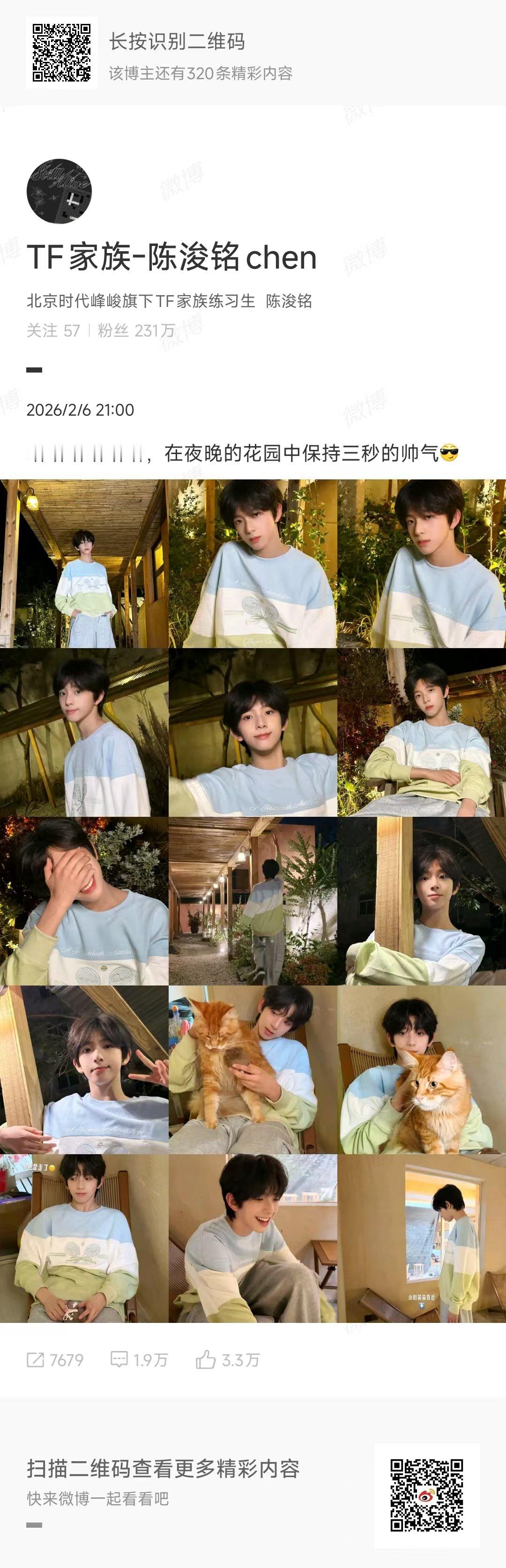 陈浚铭在花园中保持帅气陈浚铭晒海南十八宫格 在花园中保持帅气的陈浚铭