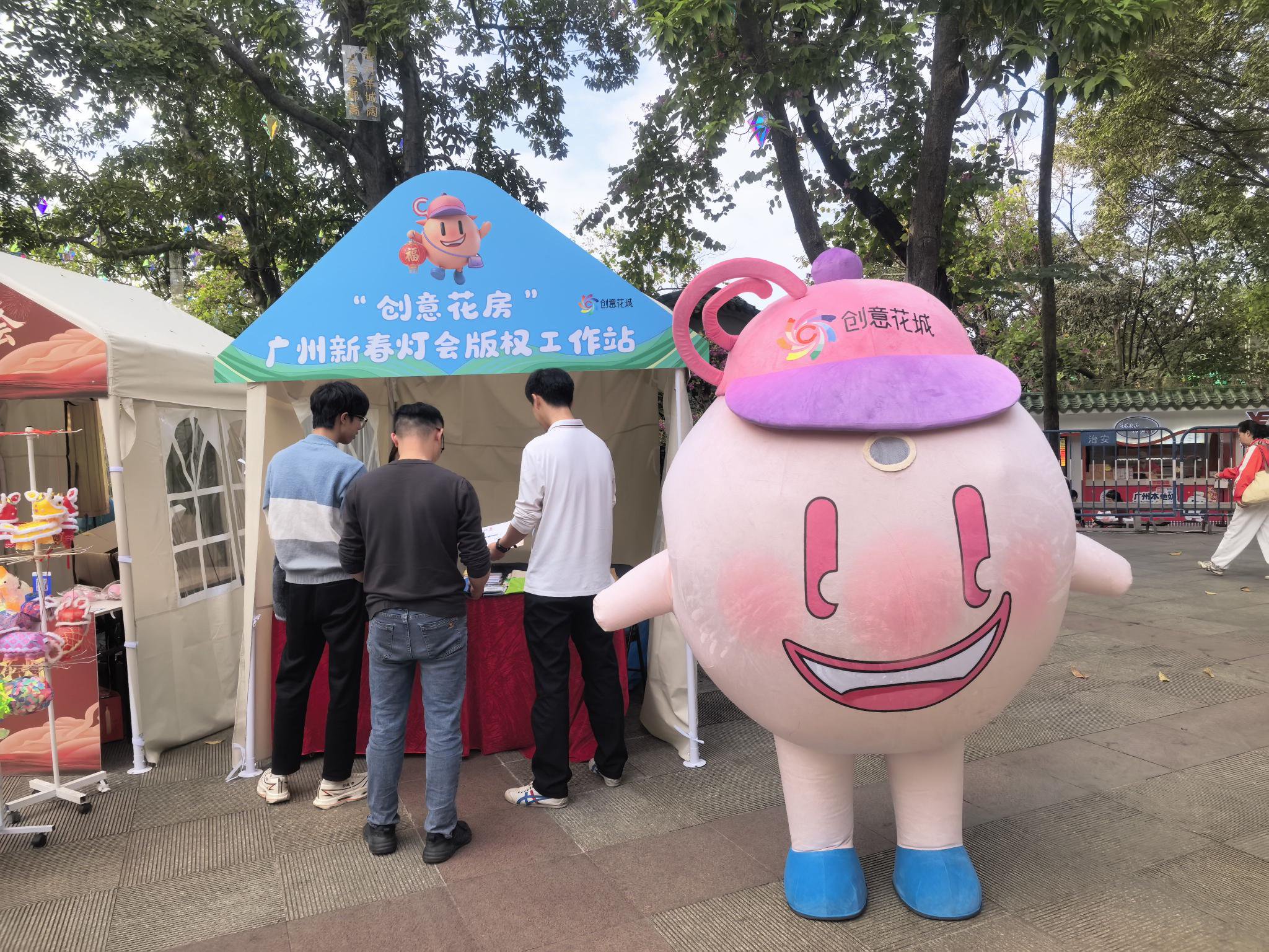 为推动版权服务直达市民身边,灯会现场设立了“创意花房”广州新春灯会版权工作站,以“版权+创意+互动”模式构建沉浸式服务场景,让版权保护触手可及。