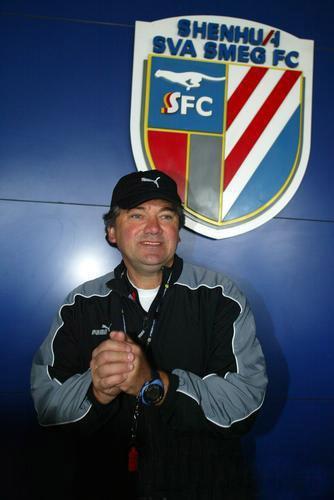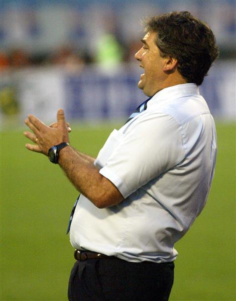 2007年6月7日,上海申花队主教练吉梅内斯在场边为球队鼓劲。当日,在山东济南进行的A3联赛揭幕战中,上海申花队以3比0战胜韩国联赛冠军城南一和队。新华社发(刘力航摄)