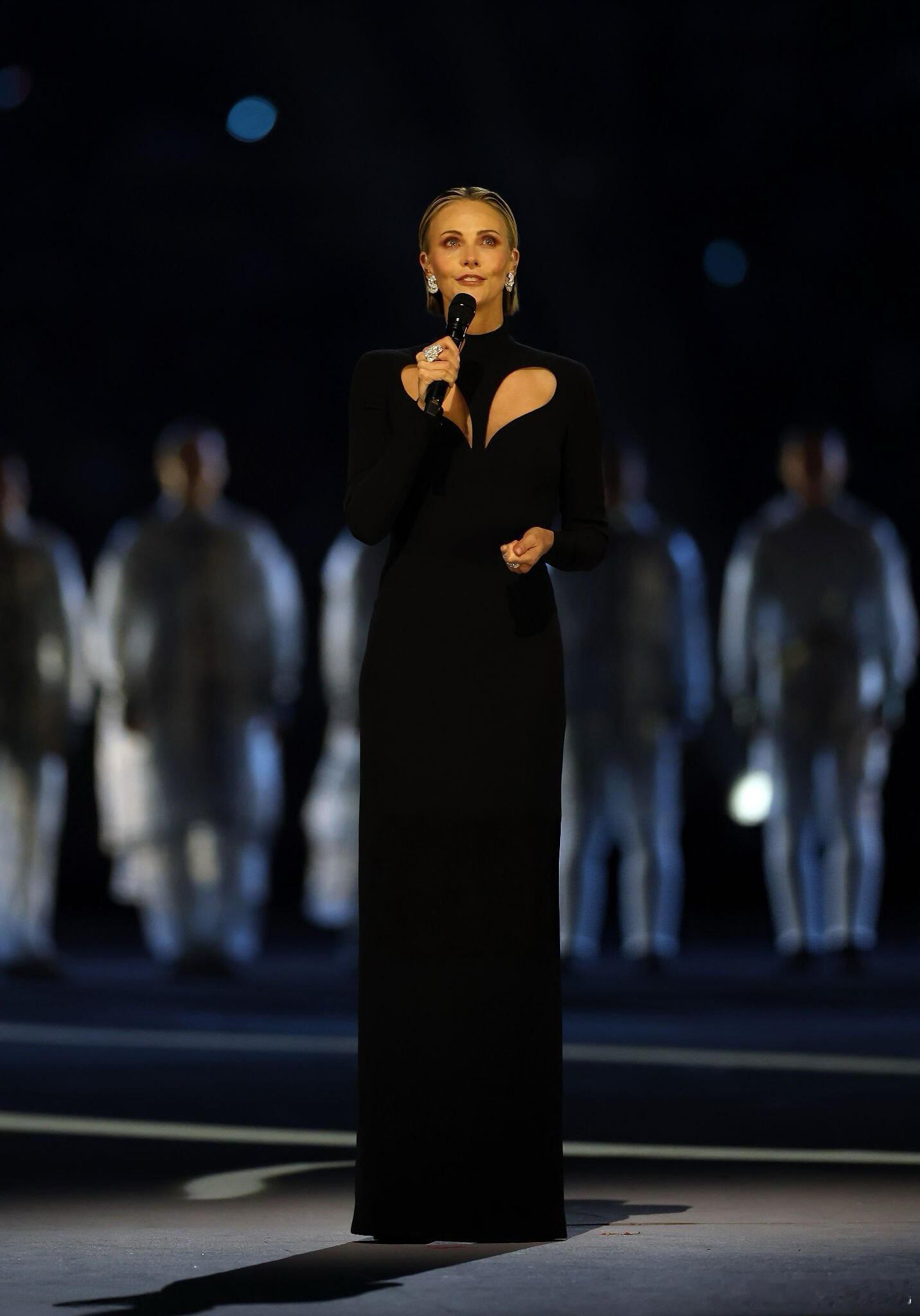 查理兹·塞隆一身范思哲黑色礼服现身2026年冬季冬奥会开幕式,以联合国和平大使的