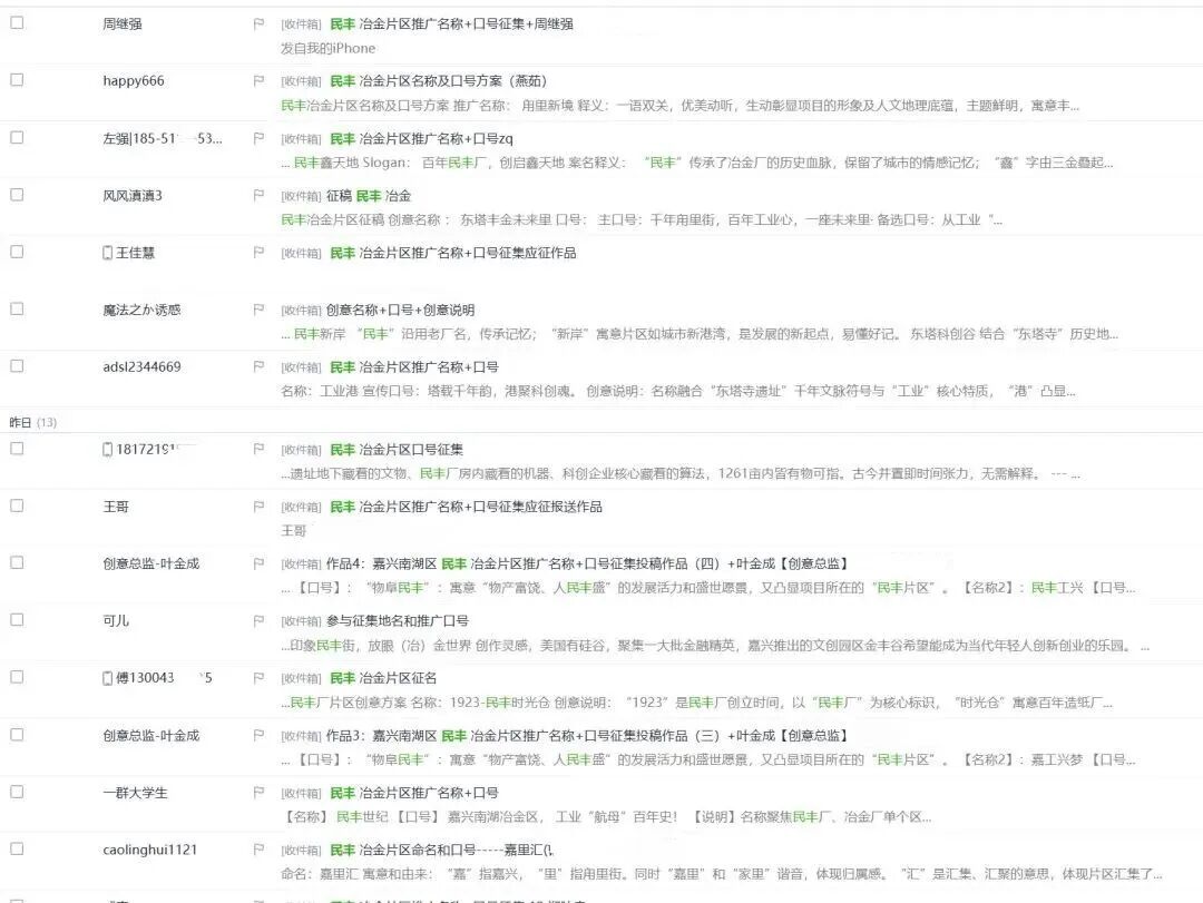 网友曹汉清提出的“民丰·东塔汇”以“工业与文脉相拥,科创与美好相逢”为口号,精准概括片区多元融合的核心特质;退休工人周小兰发来的“嘉兴·甪里创境”则凝练“千年文脉韵,百年工业魂,科创聚民心”,实现三大核心元素的有机统一;宋洪忠的“禾城·双链谷”提出“文脉链动,科创链生”,以“双链”概念凸显片区产业与文化的协同发展。“最嘉印象”“嘉兴印巷”等名称,更以简洁大气的表述,承载“醉江南,最嘉兴”“千年老嘉兴,活力新引擎”的全域定位,极具传播潜力。