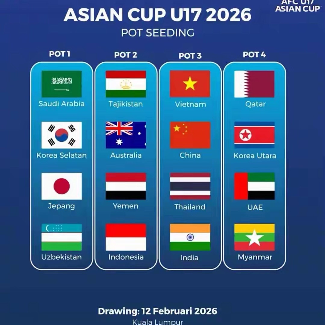 2026年U17亚洲杯正赛的分档已经确定,中国队被分在第三档,同档的还有越南、泰国和印度队。