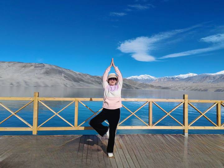 “我练瑜伽有6年多了”,没有教练,跟着App,一个人安安静静地在家练,完成一场与自己的内心对话。“拉伸肌肉,平复情绪,缓解久坐的酸痛。”这不仅是身体的锻炼,更是精神的整理。她甚至在白沙湖清澈的背景下,完成了一次与天地对话的瑜伽体式,将瞬间定格为永恒的记忆。