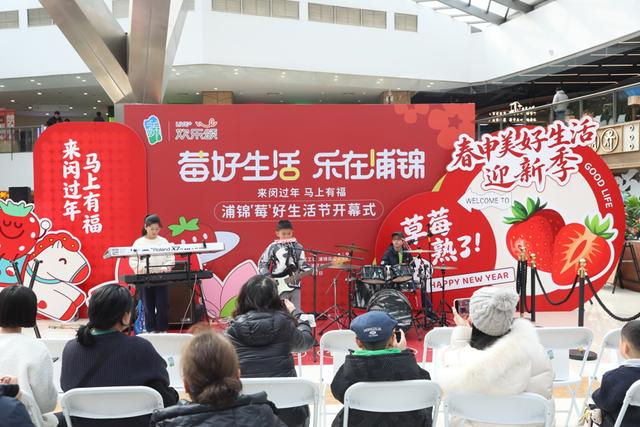 2月7日下午,闵行浦江欢乐颂商场4楼人头攒动,空气中弥漫着草莓的清甜香气。伴随着萌娃电子乐队轻快的演奏声,“来闵过年马上有福”浦锦“莓”好生活节开幕,也为“春申美好生活迎新季——‘莓’好生活乐在浦锦”主题活动拉开了序幕。本次活动将持续至2月8日,浦锦街道以特色草莓为媒,串联起文旅商体展多元体验,为市民带来一场别具特色的新春消费盛宴。