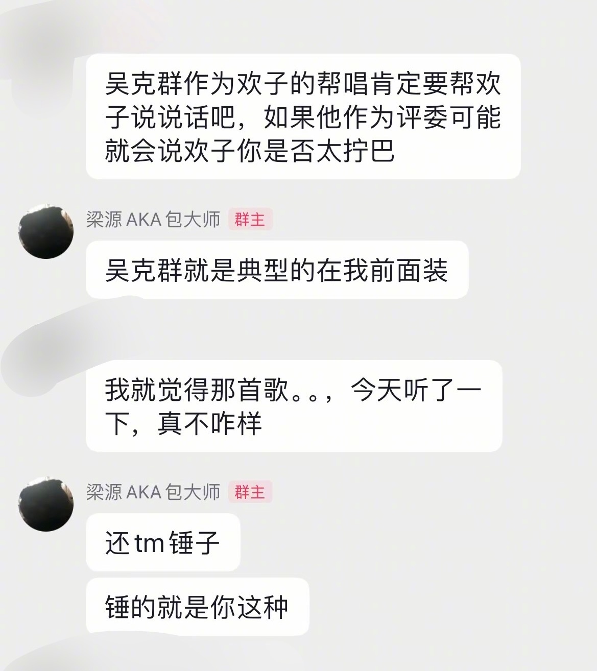 梁源在粉丝群蛐蛐吴克群