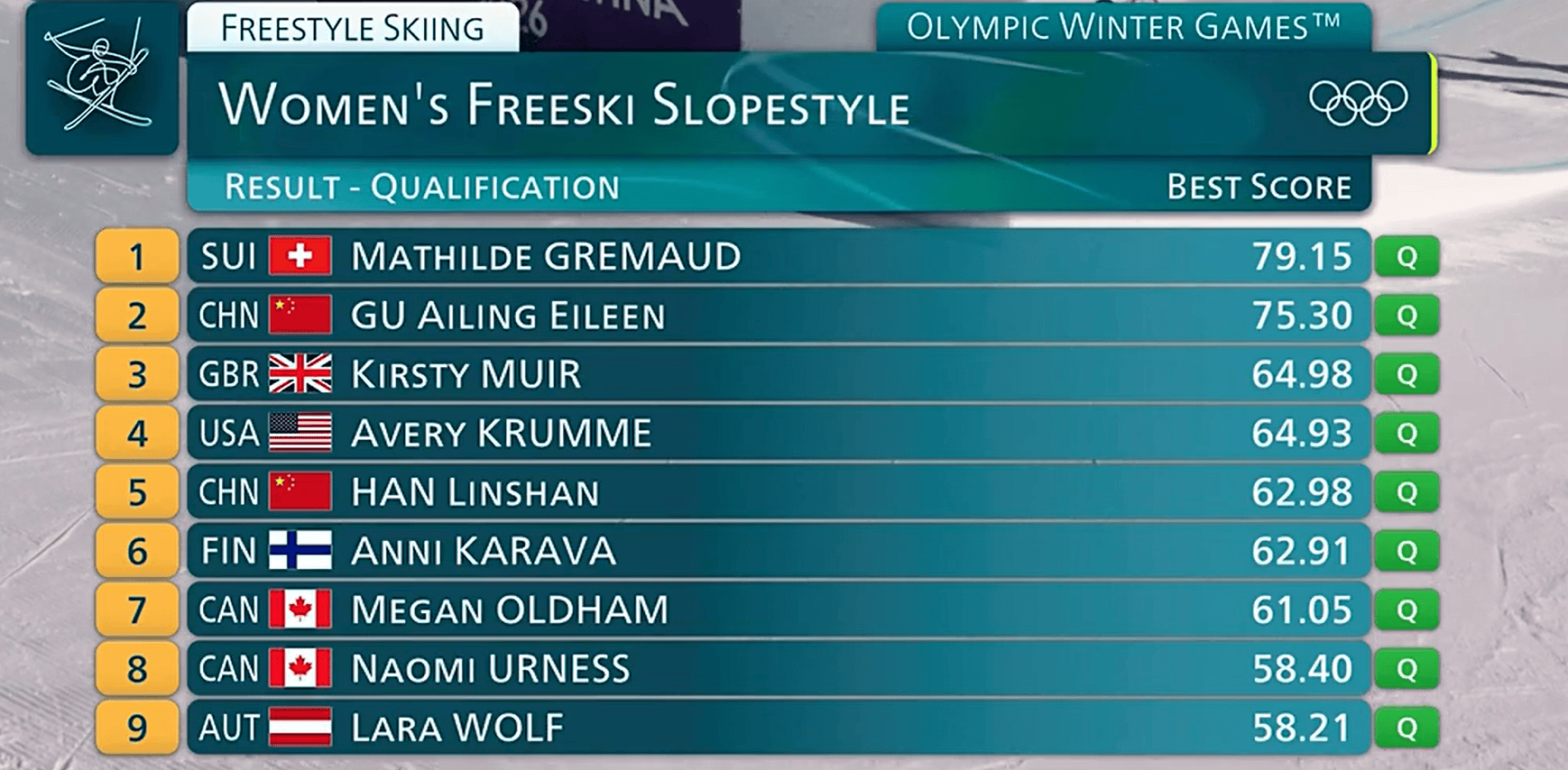 虎扑02月07日讯刚刚结束的米兰冬奥会自由式滑雪女子坡面障碍技巧资格赛,中国三名选手锁定晋级决赛名额。详情如下: